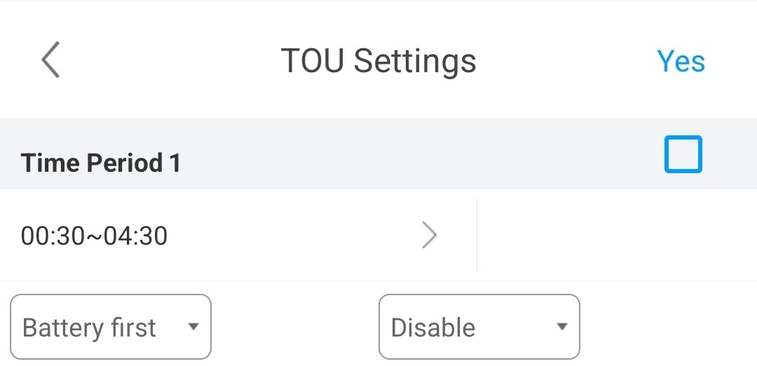 MEN, jag vill ladda batteriet från nätet mellan 21 och 05, men lyckas inte ställa in systemet så att det sker. När jag väljer BATT FIRST för dessa perioder och ENABLE, så händer ändå ingenting, fastän jag valt ENABLE för ACcharge. nedanför står Max charge from grid med 0.0 kW. detta kan inte ändras. SET FAILED visas.