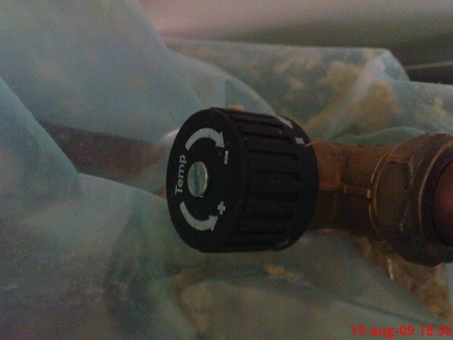 Jag har också en anliggningstermometer på blandvattenröret, så att jag kan se tempen (Rekommenderas). Prova att vrida lite i taget ca 1/10 varv åt gången och mät sedan temperaturen tills du hittar rätt läge. Jag hade en panntemperatur på ca 80 grader i början men sänkte till ca 62 grader då jag upplevde att det var svårare att ställa in blandaren då. Nu verkar det fungera.