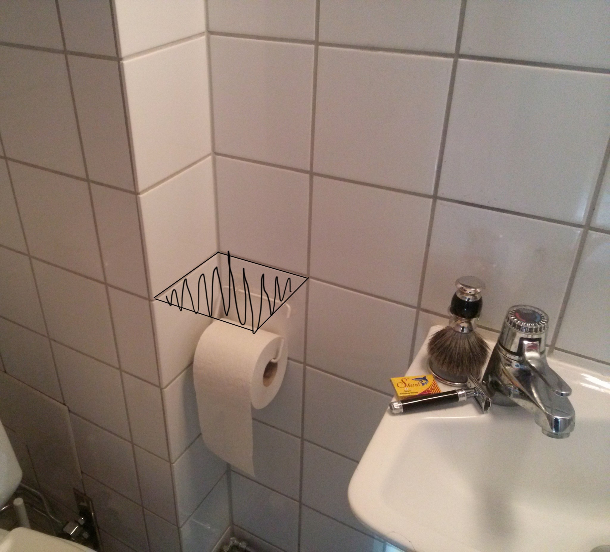 Jag vill sätta upp en liten rakhylla till grejerna på handfatet. Tänkte införskaffa en snygg kakelplatta 15x15 cm med Izmirmotiv eller en franska lilja eller nåt sånt, men undrar hur jag sta staga upp hyllan.
