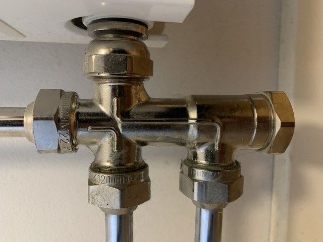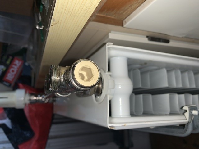 Frågan är vad det är för ventil i det nedre kopplet och om det är ett-rörs eller två-rörsystem? Om det är ett-rör går det inte att stänga av en viss radiator för att ta bort den tillfälligt utan att tappa ur systemet.