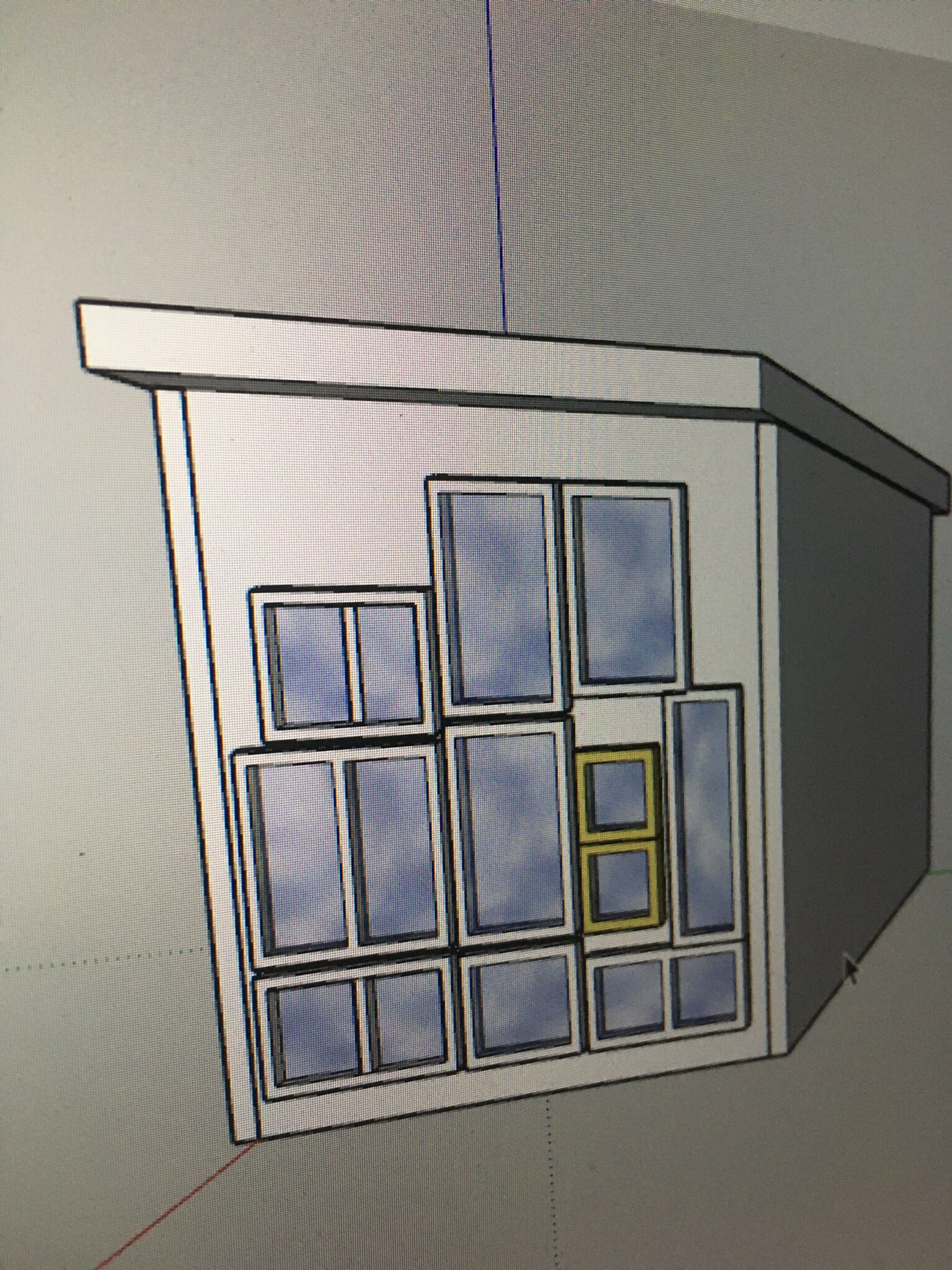 Designen känns rolig och eftersom det mest ska vara ett sommar-rum så är jag inte så bekymrad över att den nedsatta isoleringen i väggen som alla fönster innebär. Dock är jag fundersam över hållbarhet i konstruktionen, då det är många tunga fönster som ska sättas upp över väggen, där vertikala reglarna inte kommer kunna gå med 60 centimeters mellanrum, utan snarare 1m emellan, kanske mer.