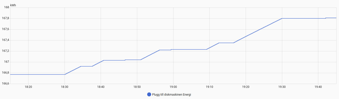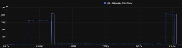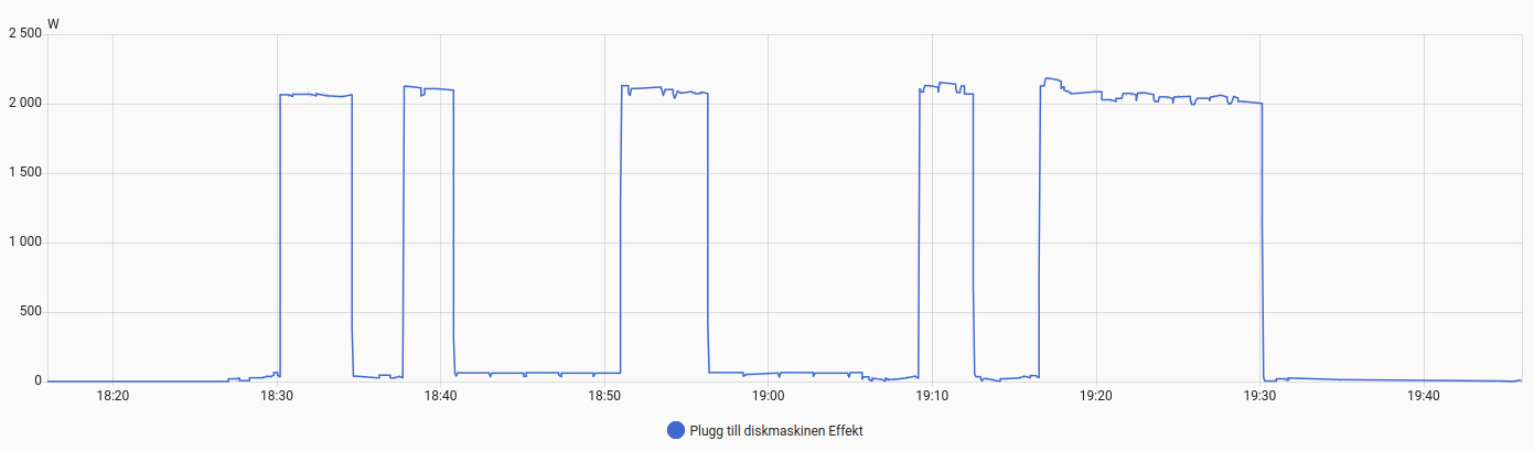 Jag tittade idag på min diskmaskinens effektanvändning vid användning av dess Ecoprogram.”