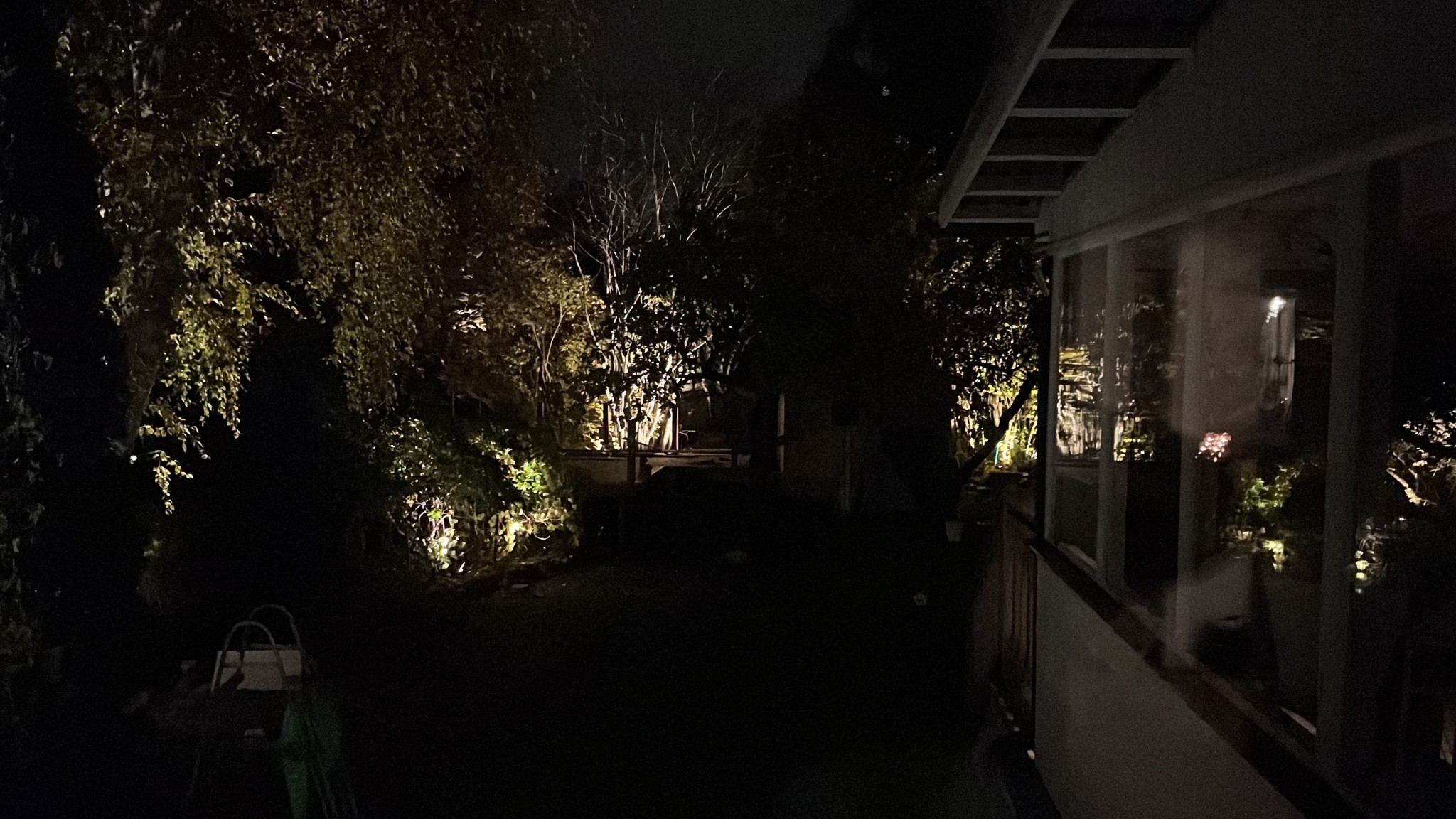 Då det är andra hösten i huset och jag ogillade det totala mörkret förra hösten i trädgården har jag installerat en del belysning. Jag har KNX och en väderstation inställt på att tända all utebelysning när ljuset går under 200lx och släcks på timer vid 23:00, ibland släcker jag det manuellt tidigare.