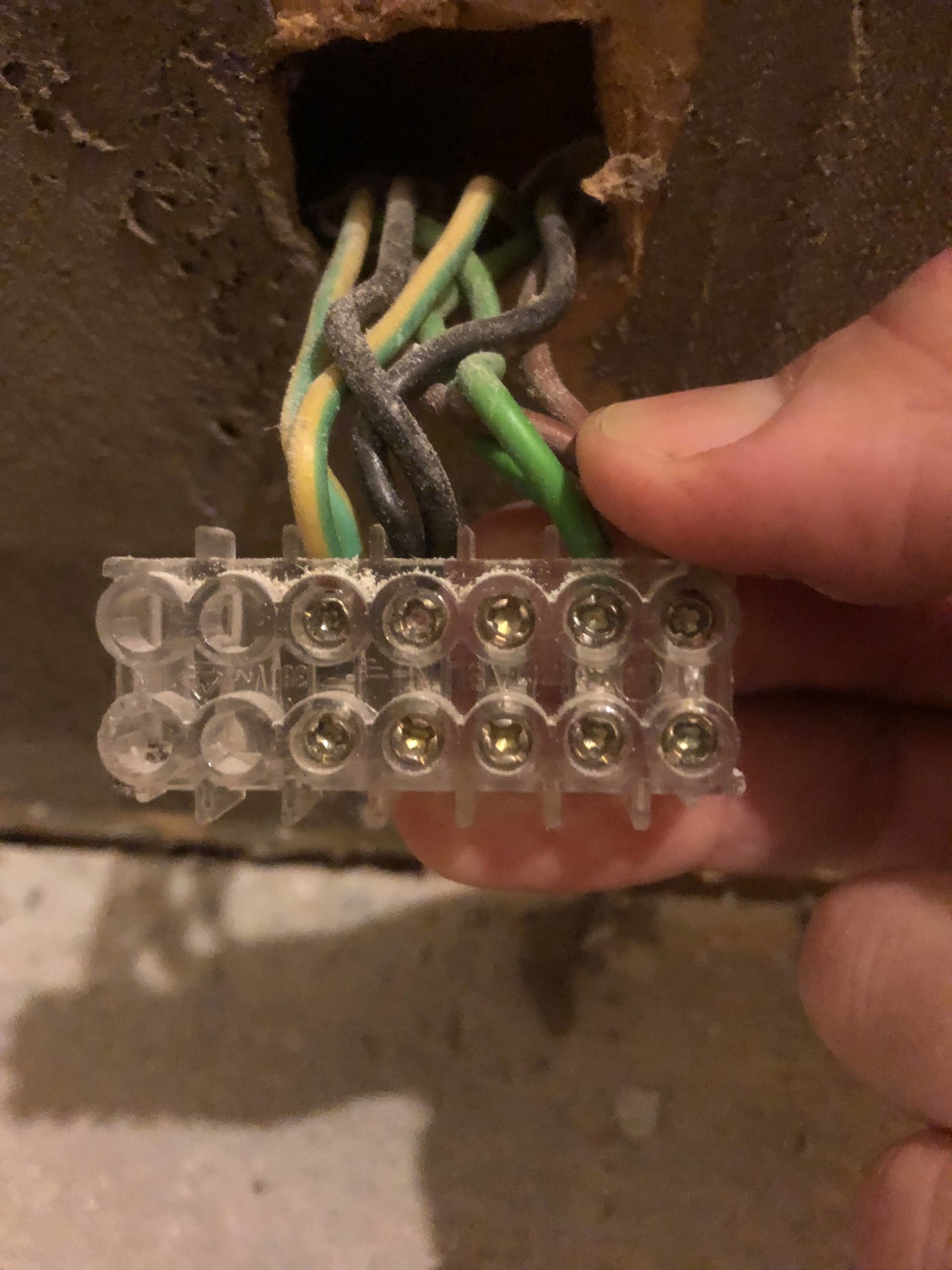 När det byttes till vattenburet sattes en dosa över anslutningen och kablarna sitter i en kopplingslist (bild).