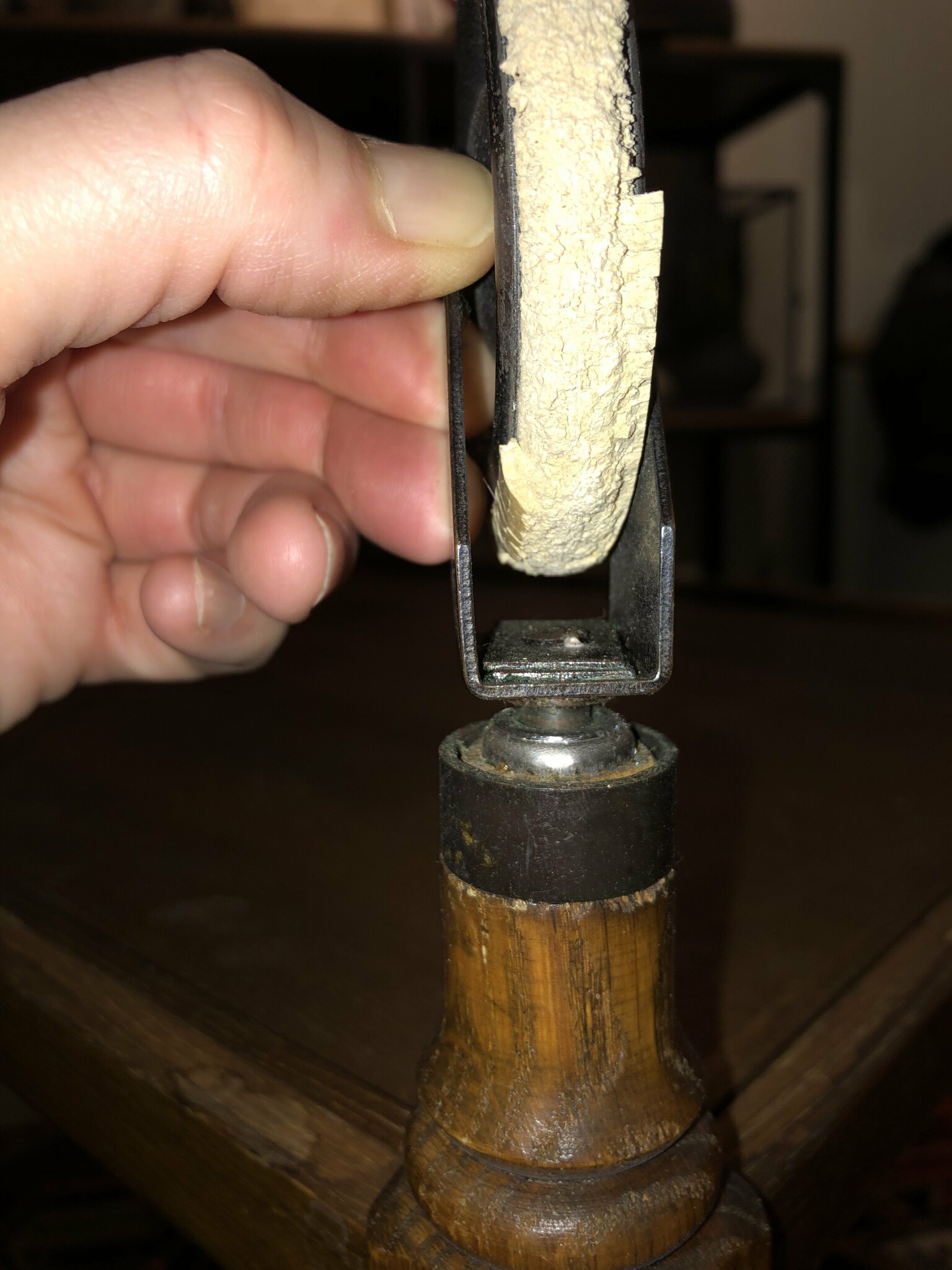 Jag är helt ny på detta. Försöker renovera en gammal möbel och behöver ta bort de gamla hjulen. Förstår inte hur jag ska göra. Har försökt med lätt ”våld” och skruva på det lilla som går, men de sitter som berget. Den lilla taggade ”manschetten” som sitter nerhamrad mot träet ser även limmad ut.