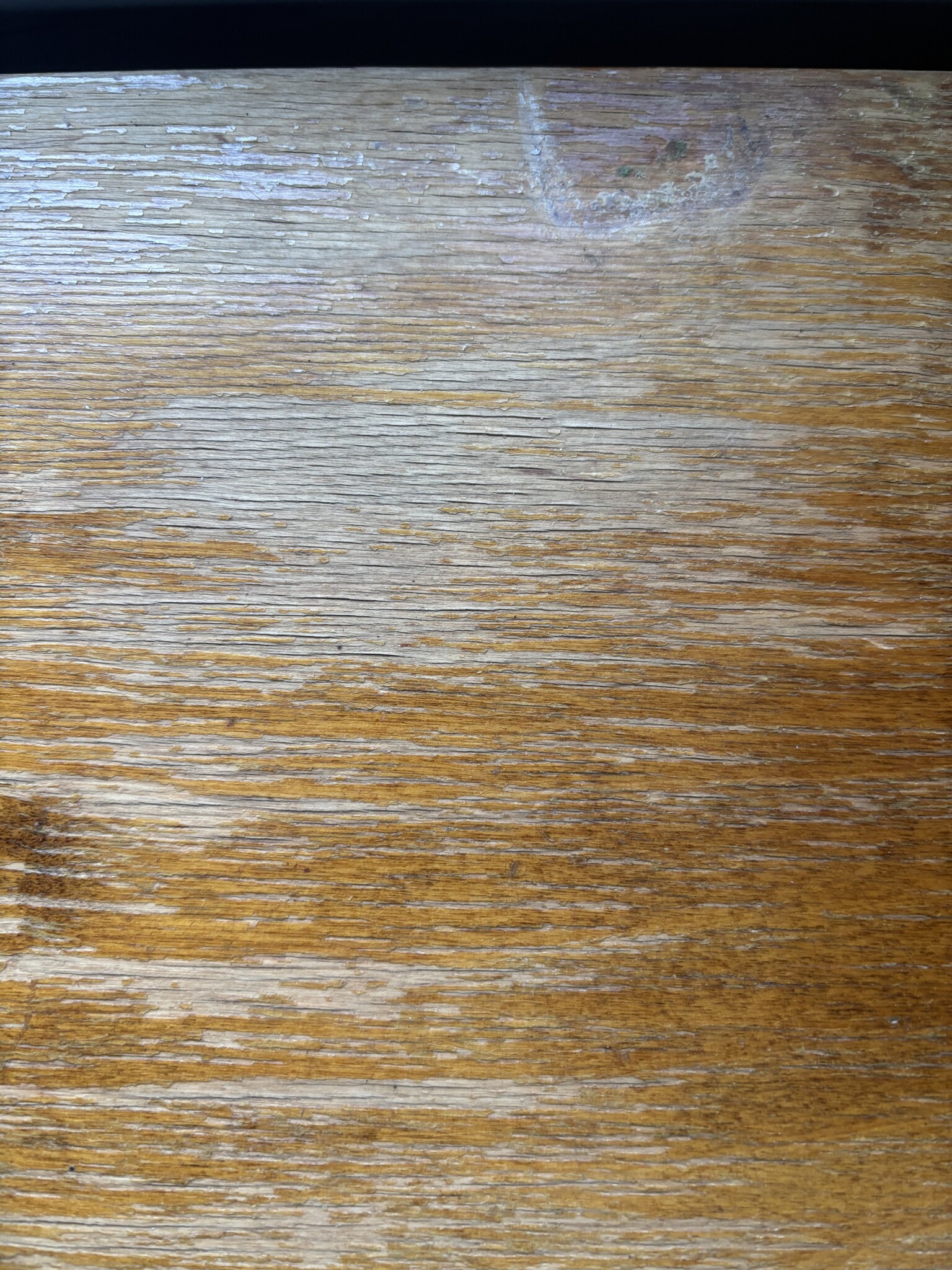 Tack för tipset! Väteperoxid alt. Oxalsyra har jag har ska läst ska vara effektivt mot i vart fall de ljusa fläckarna/vattenbombar så det är nog en god start.P Pettman skrev:Jag tror ATrestoration (en galet duktig estnisk möbelrenoverare som lägger videos av sitt arbete på Youtube då och då) kör med väteperoxid för vissa fläckar. Frågan är dock om fläcken från skrivbordsunderlägget är en fläck eller bara avsaknad av blekning.
