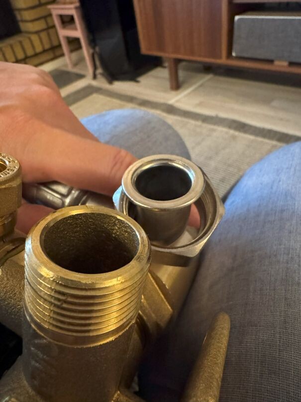 Här då, är det tänkt att den lilla tätningsringen (om det är det) ska läggas emellan och att inget annat behövs? Ska jag dra åt för kung och fosterland eller bara lite lagom?