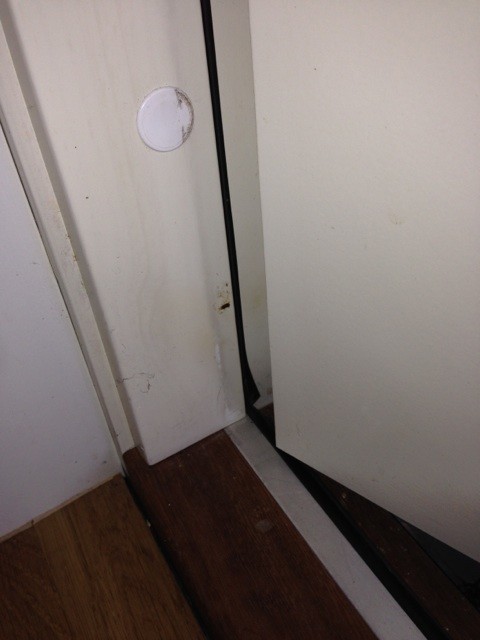 Fick ta bort halva listen då dörren ej gick att stänga utan att man måste slå igen den . Drav att klippan nere är kvar . Den är mer sluten upptill