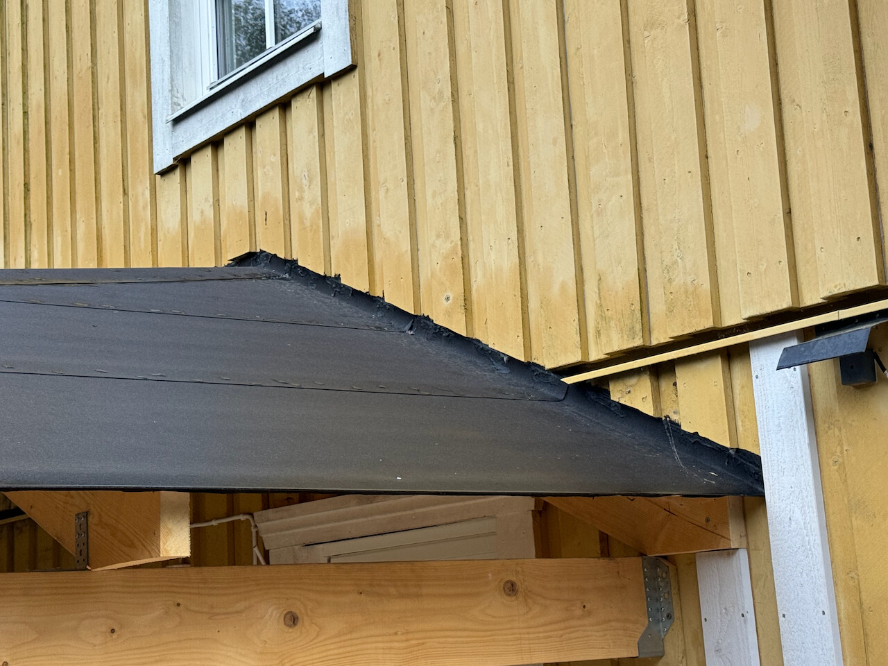 Genom det här foruminläggen så undrar jag om det är någon av alla kunniga därute som skulle kunne ge lite saklig input om hur jag ska göra vid “droppnäsan” (plåten mellan över och undervåning) när jag sätter plåtar mot husvägg när ytpappen monteras. Där kan det ju rinna i sidled. Jag kanske borde skippat att fälla in altantaket i väggen….