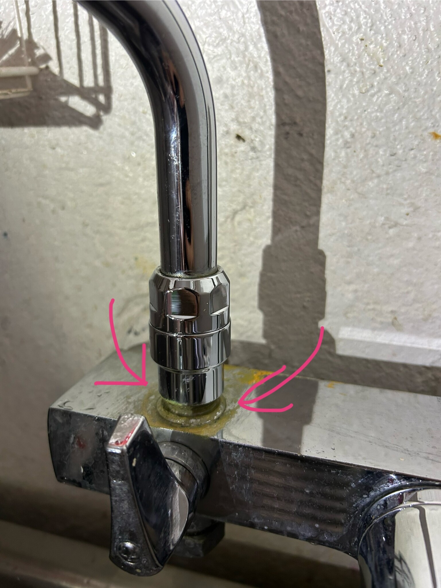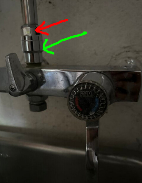 Där under sitter det antagligen en fiberpackning mot duschblandarens 15-gänga som pekar uppåt.