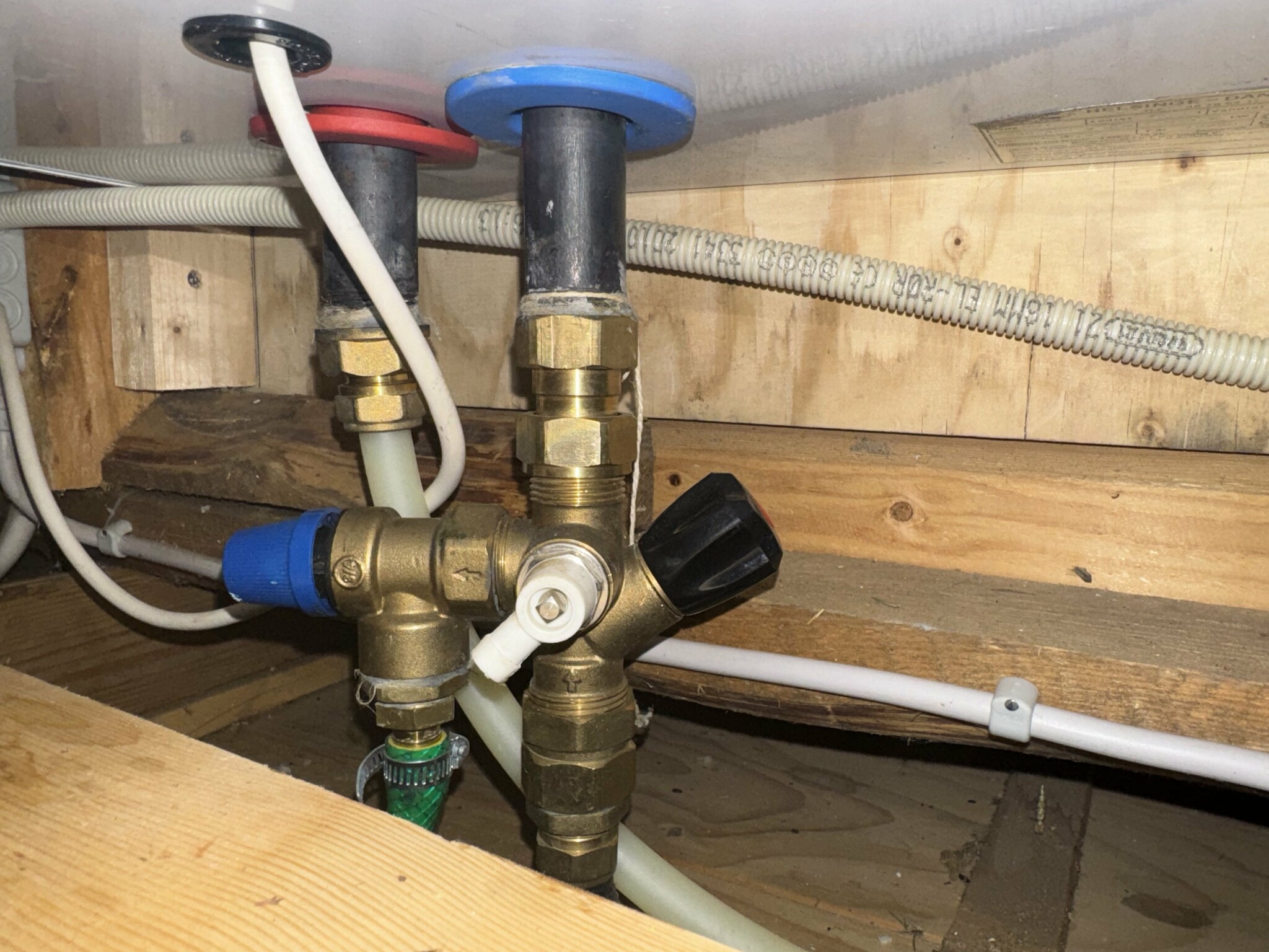 Den vita ventilen är för urtappning.