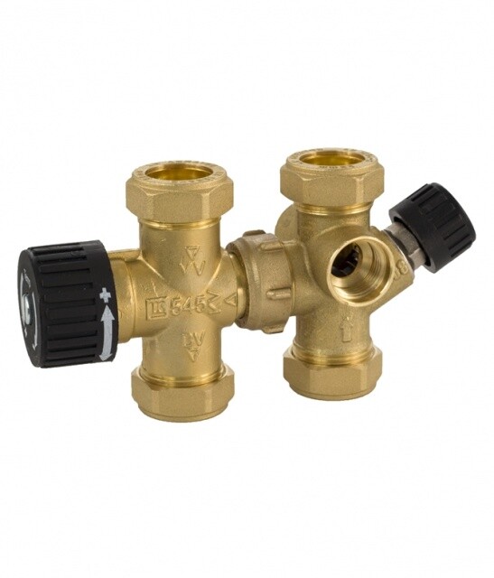 Men jag hade nog allt satt en ventilkombination så man kan kontrollera tempen på utgående varmvatten plus att man kan "öka" på volymen lite genom inblandning av kallvatten.