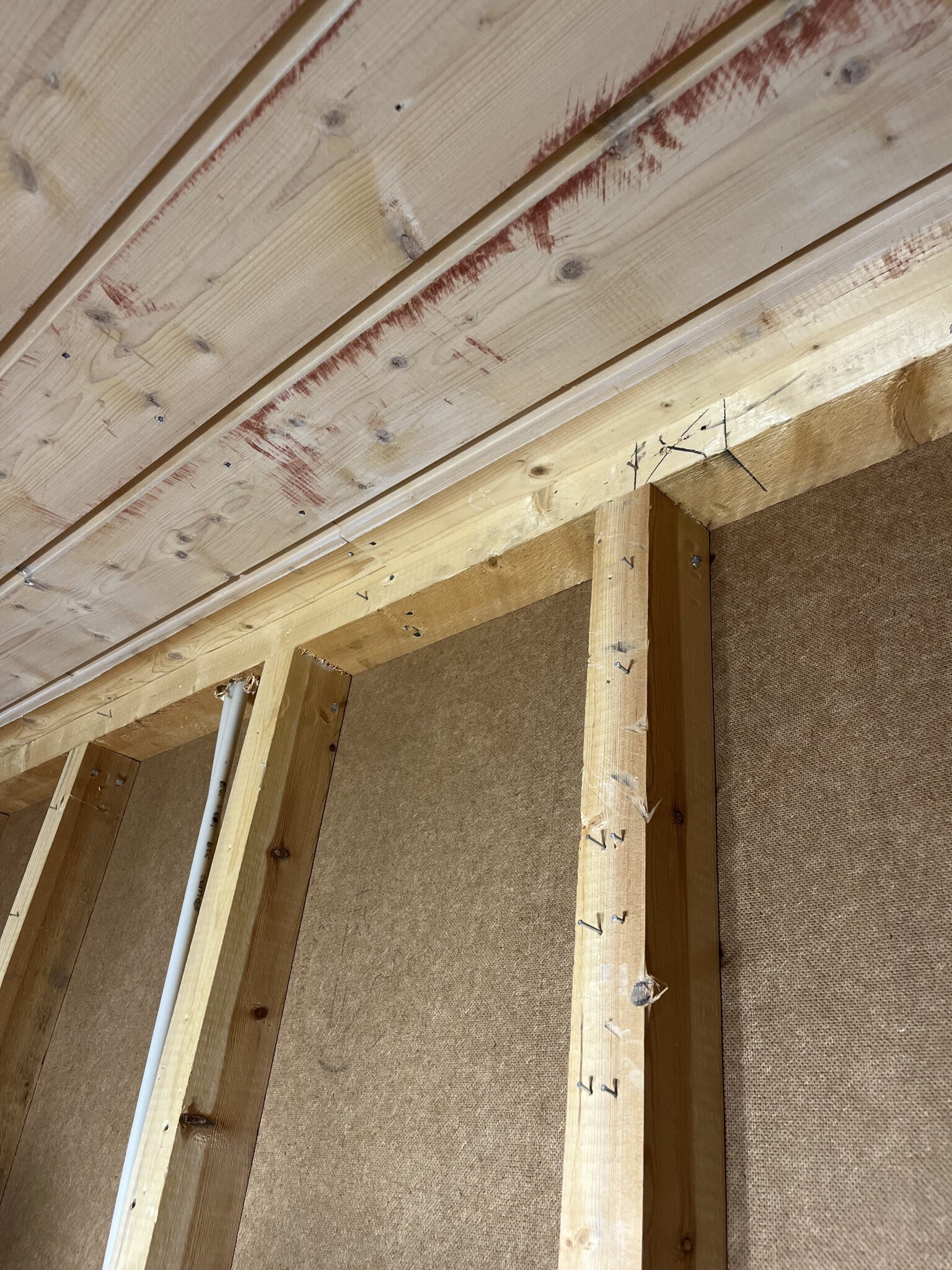 Det är en enkel överliggare mot taket, ser nu att det ser ut som dubbel där taklisten suttit. Cc 40 på reglarna så en försvinner och tillkommer 2 reglar för att få rätt mått på öppningen.C Chrzan skrev:Förstår att du reagerar på yttrandet, för både ritningen på fackverkskonstruktionen och din upptäckt att väggen är byggd efter färdigt ytskikt på innertaket pekar på motsatsen. Vad är dokumentets status, rent formellt? Är det utfärdat specifikt med anledning av någon fråga/tvist/problem som uppstått i just detta hus? Eller något standardformulär där detta slunkit med av ouppmärksamhet?