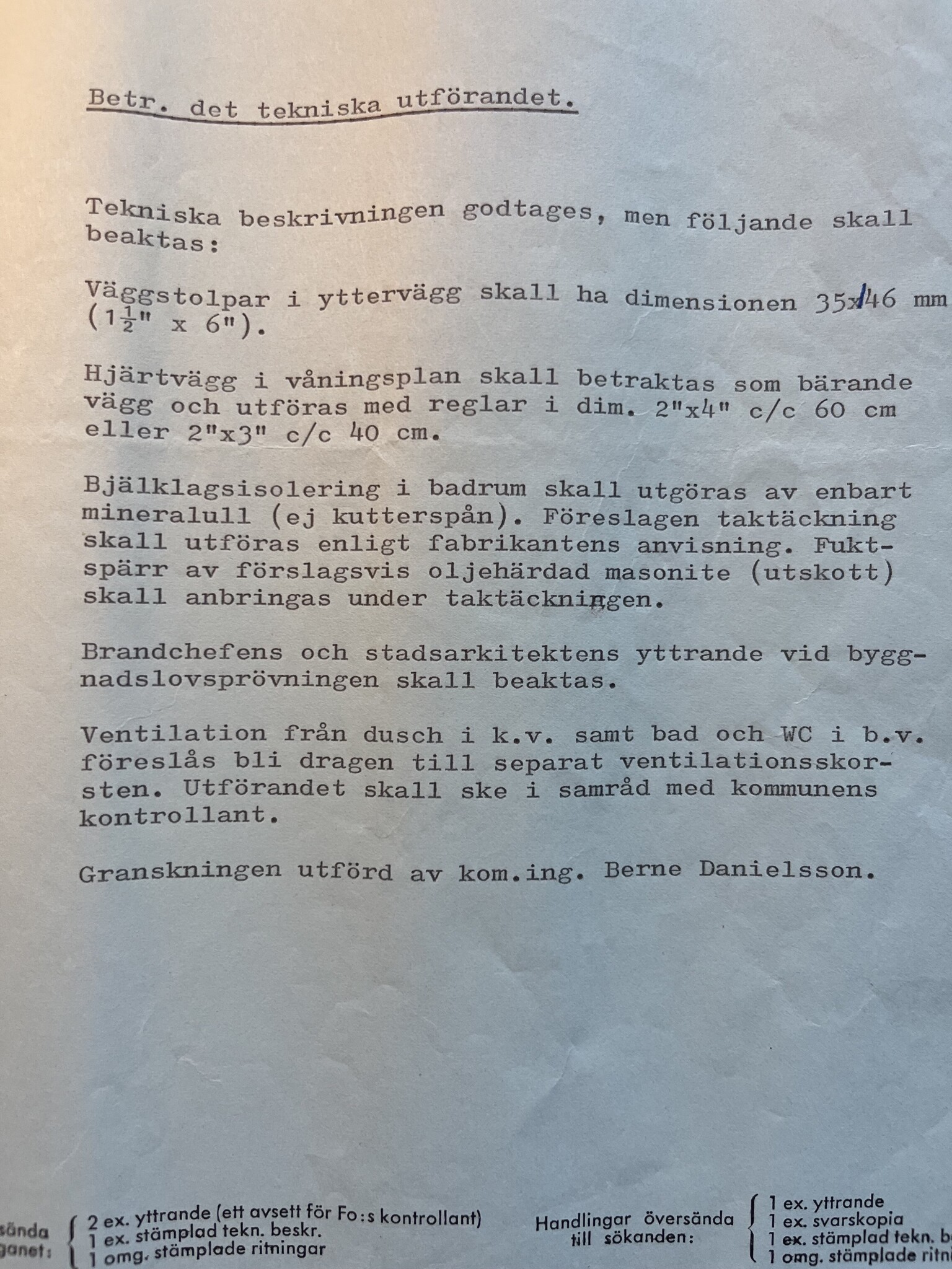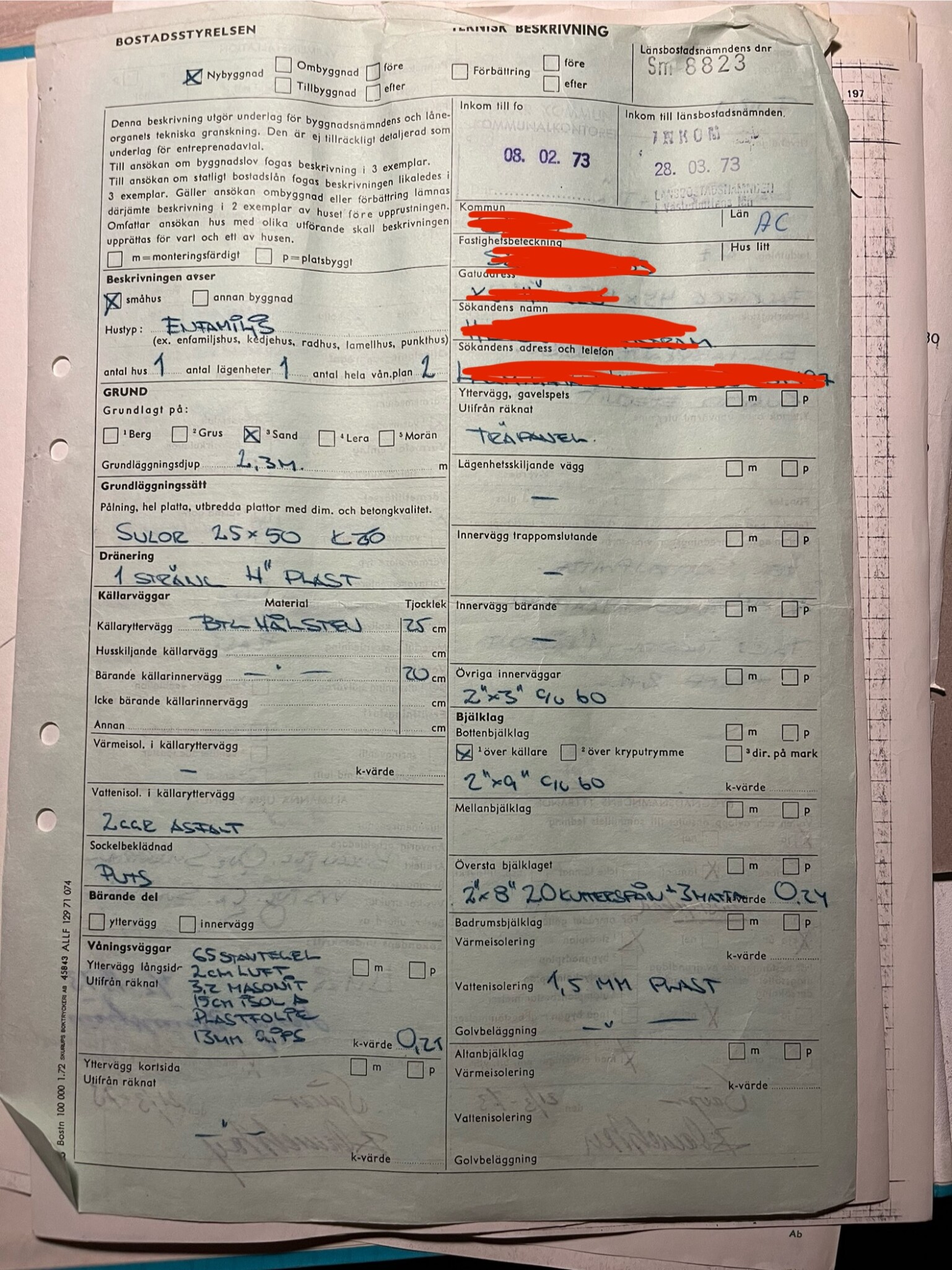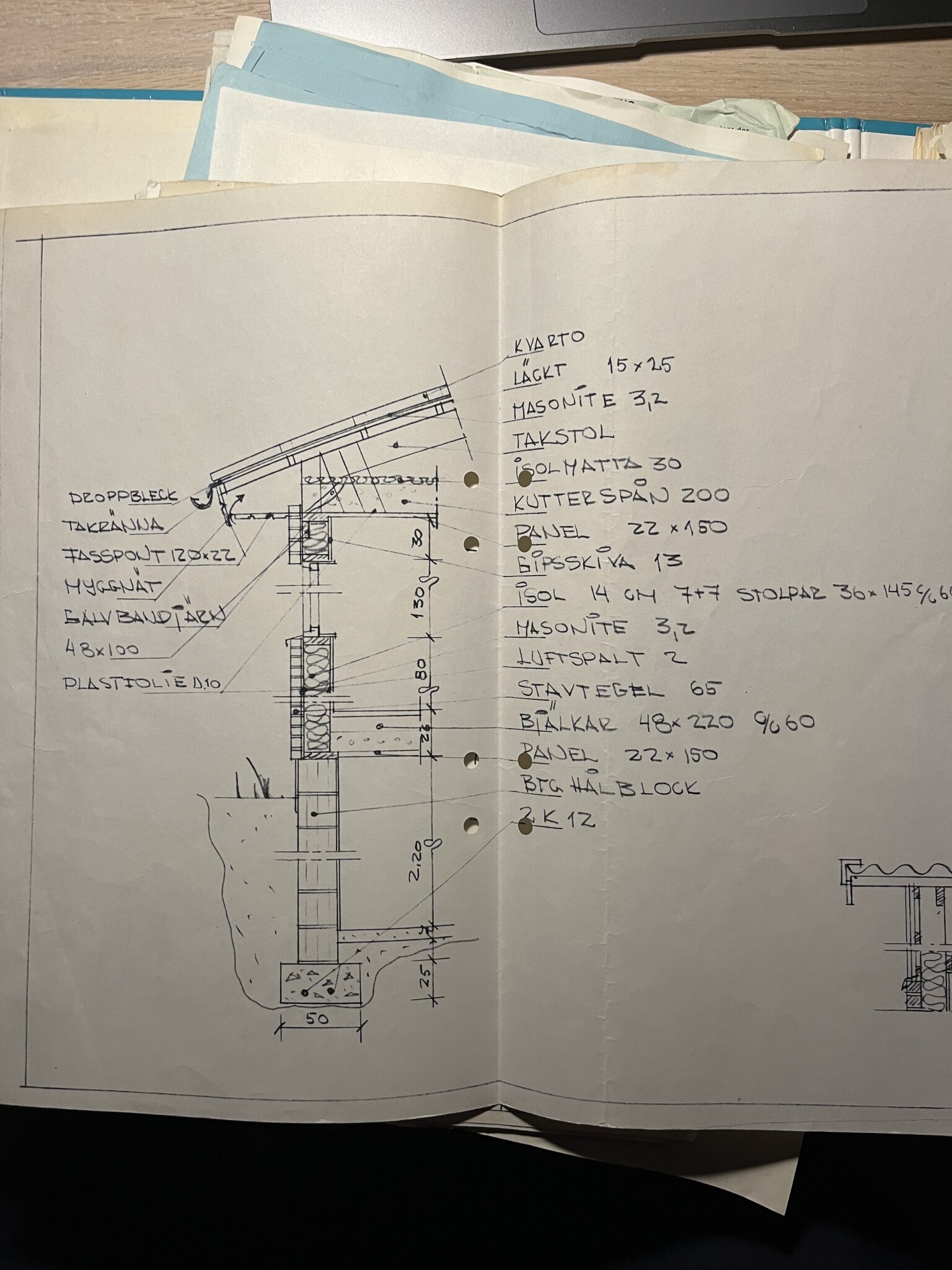 Har inte sett några andra ritningar förutom vs och el, annars är det mest planritning och utvändiga skisser. Men finns mycket papper och kan kolla lite mer noggrant senare 😊C Chrzan skrev:Vilken nostalgitripp