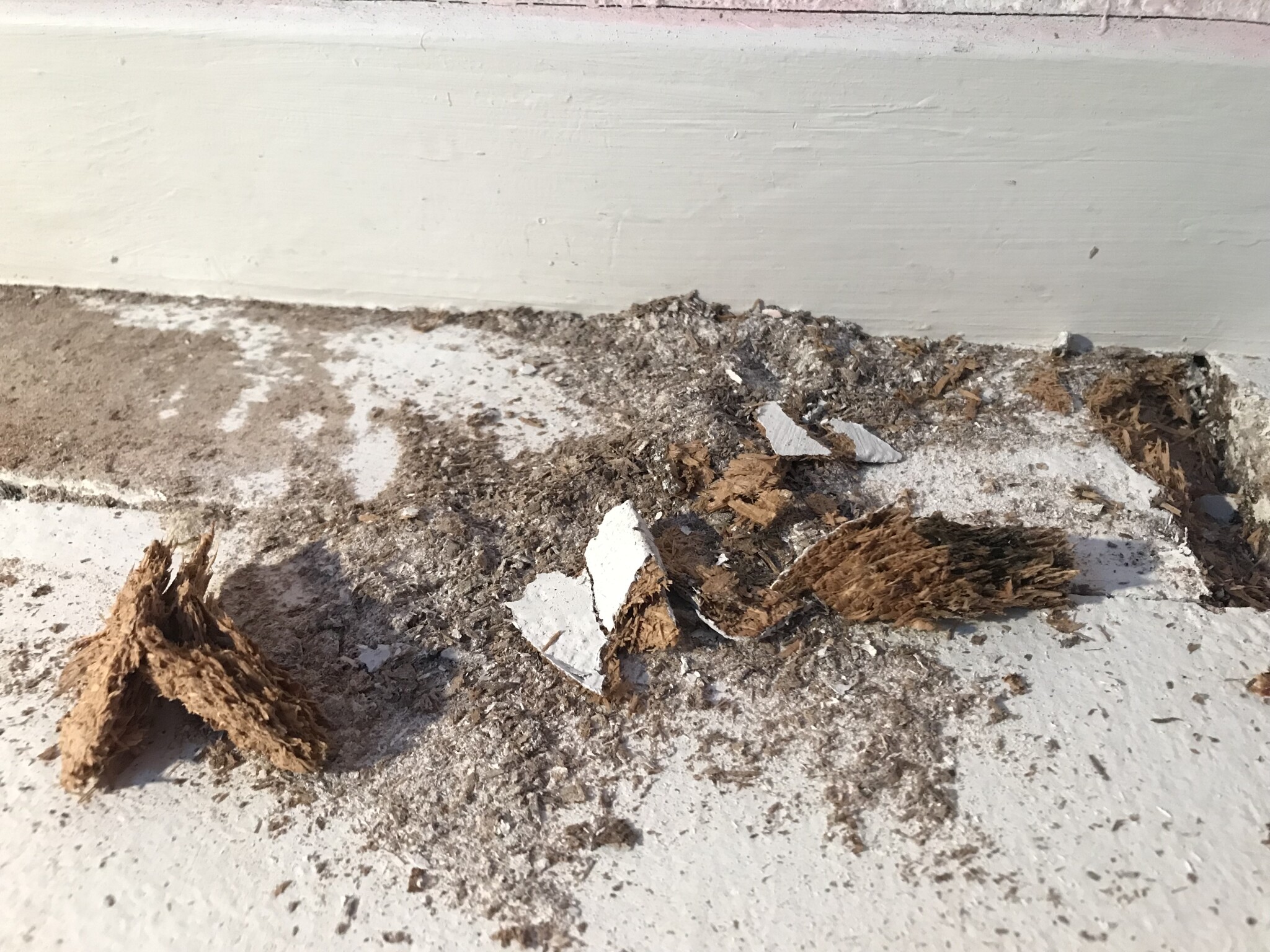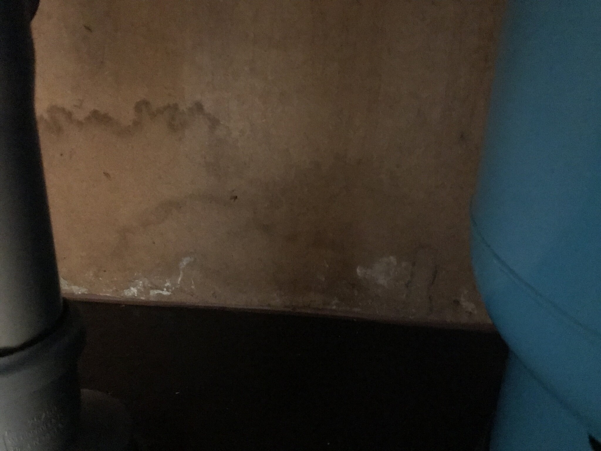 En liten sommarstuga på 28kvm, upptäckte i våras att en golvbräda i sovrummet stack upp och mätte förhöjda fuktvärden, ca 17% mot ca 13% på de kringliggande. Väntat in semester för att åtgärda och för att skjuta på det eftersom jag inte vet hur man gör så bestämde jag mig idag för att lägga ny plastmatta i köket då den gamla var trasig och äcklig. Så då upptäckte jag svart missfärgning och upphöjda brädor även här.