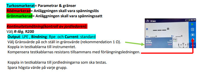 Tjena, jag skulle vilja ha svar på hur jag på bästa sätt utför en korrekt kontinuitetsmätning för skyddsledare med en Eurotester. Jag har kikat på en snabbmall, bifogar bild. Men undrar fortsatt hur man ska gå tillväga mest effektivt..