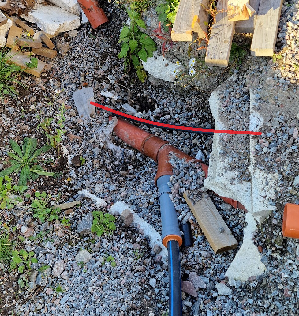 Hej! Jag tror att den ligger djupare än 1 meter större delen av sträckan från gatan till huset. Men just här låg den ytligare än väntat, och det var också därför den blev avgrävd.K Kasken skrev:Jag är absolut ingen expert på området, men vattenledningen verkar ju bara ligga på 1-2dm djup?