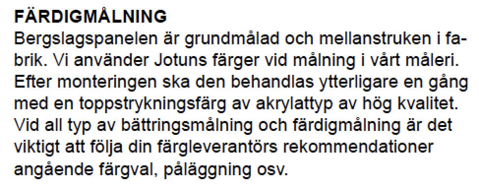 Jag ska måla om huset med akrylatfärg nästa år. Kommer tvätta, borsta spola av och sedan måla med täckfärg direkt. Det är väl inget helvetesmoment?J JohanLun skrev:Slamfärgen passar väl dessutom bäst på sågat och inte hyvlat virke men kanske är all nutida fasadpanel sågad? Slamfärg anser jag vara en av de bättre färgerna sett till hållbarhet av underliggande trä och materialkostnad givet att underhållsintervall kan vara tätare, läs man kan måla om själv utan dyra ställningar.