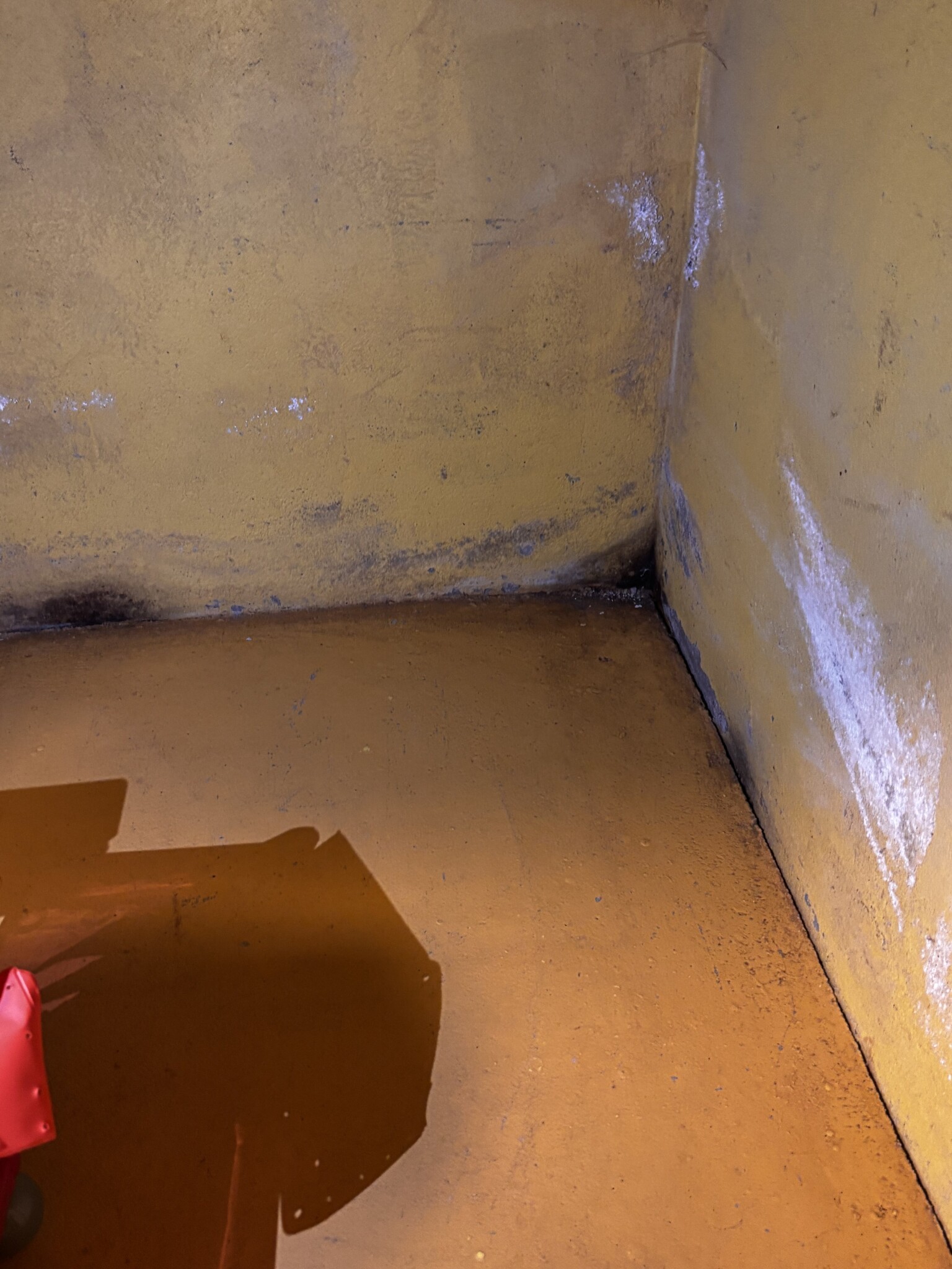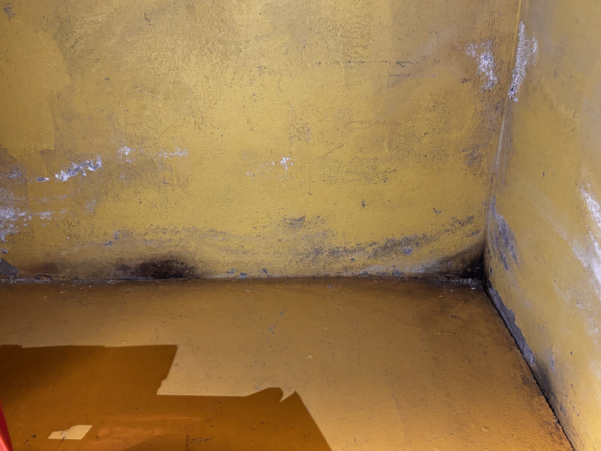 Jag har varit och tittat på ett hus som ska vara familjens fritidshus. Hittade ett par smärre ”fläckar” i ett källarhörn, ett verkstadsrum.