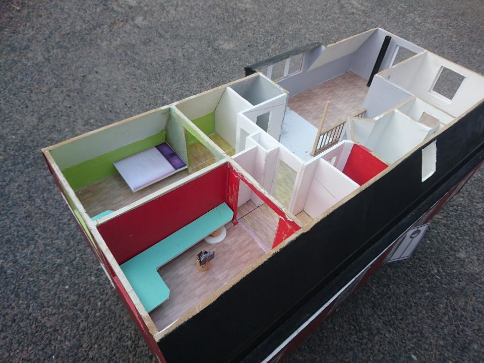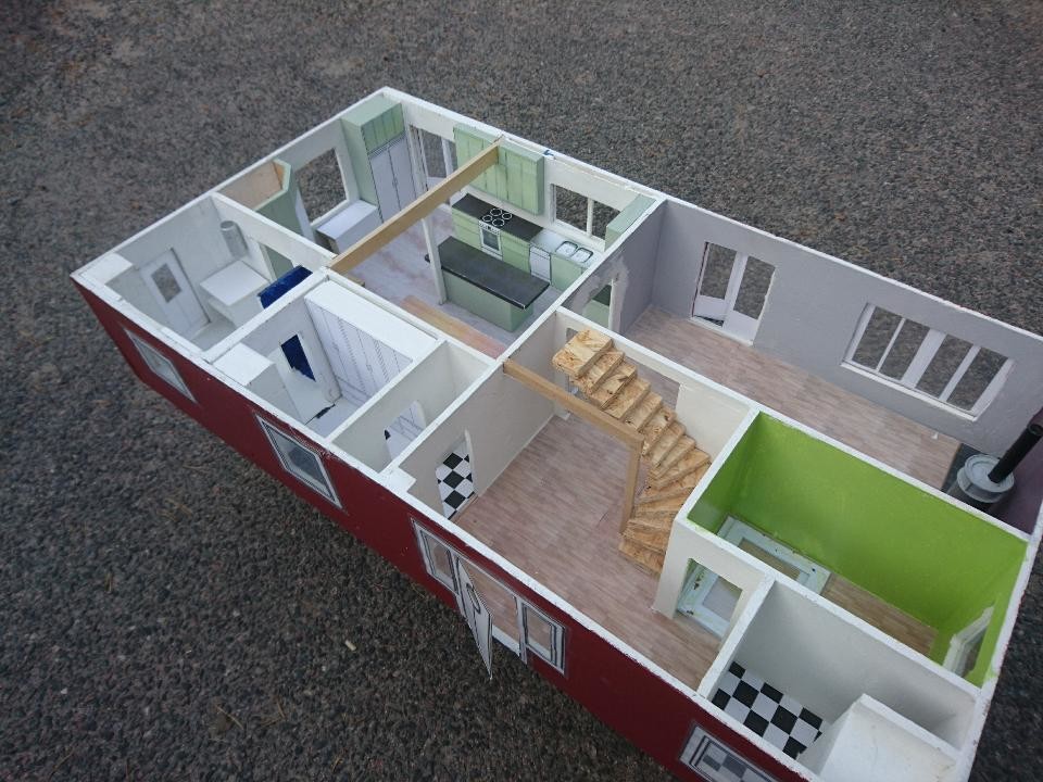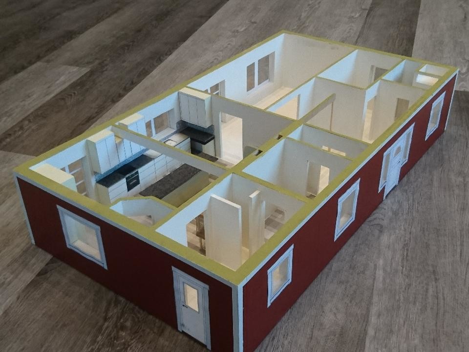 Husmodell i skala 1:18 som hjälp vid design av husutbyggnad