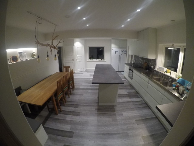 Med lite lysdioder och en action-kamera kan det faktiskt se kusligt autentiskt ut. Här två bilder från köket ur olika riktningar: