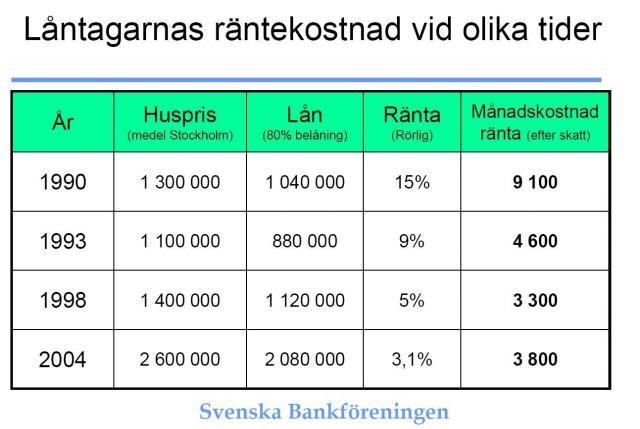 Om marknadsläget var identiskt och inflationen varit 0%, skulle husets marknadspris vara 900 000:-. Då har banken en kredit på 950 000:- med en säkerhet värd 900 000:-.