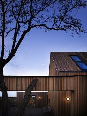 Har kollat lite på hus där man lagt värmebehandlat trä, tex ThermoWood, på både fasad och tak.