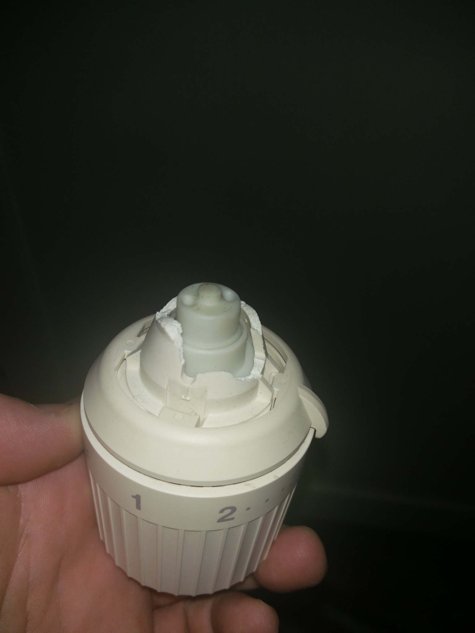 Du har en kostnad på under 500 kr för att ersätta termostaten, så du kan vara lugn. Det enda tråkiga är väl att din trasiga termostat uppenbarligen är relativt ny. Lämna över bilderna till exempelvis Rinkabyrör så borde de kunna hjälpa dig att hitta en exakt likadan.