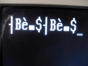 Så här ser skärmen ut när jag startar datorn med IDE disken inkopplad. Bild 00301. Sedan kommer bara dessa tecken, bild 00311 kommer upp i hörnet på skärmen, markören till höger blinkar. Sedan händer inget mera.