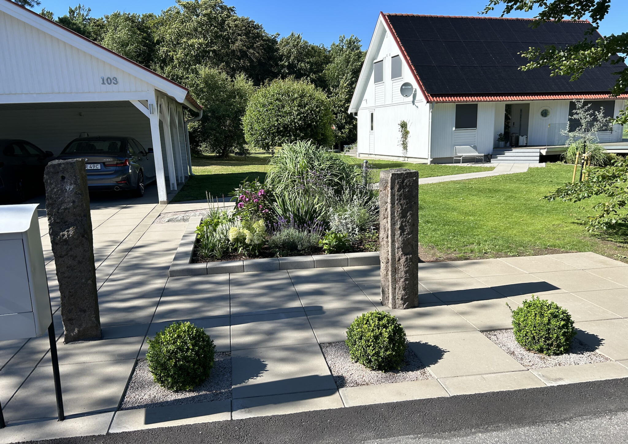 Jag har gamla rejäla granitstolpar som är lite olika höga och med olika avstånd mellan sig, och mellan några av dessa skulle jag vilja få till någon form av staket eller avskärmning. Har nyligen byggt en staketvägg för soptunnorna med hjälp av Wärnamo Designs stolpar vilket blev jäkligt snyggt med liggande (på högkant) 2tumsreglar. Men med tanke på att det lutar något längs de tänkta staketets läge och granitstolparna så blir det väl konstigt med liggande reglar, som då kanske kommer se sneda ut.