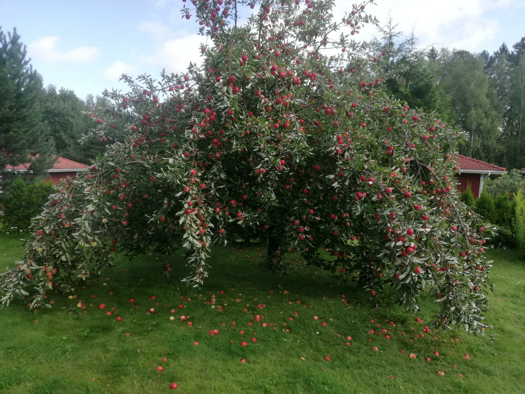 Sort B (sista 2 bilderna) är ett ganska stort äpple (dock väldigt varierande storlek) med lite halvmatt yta och mestadels grönt med svagt röda skiftningar. Även detta är ganska hårt och krispigt. Enligt ägaren mognar det i augusti/september.