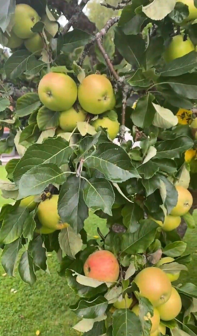 Sort A (första 2 bilderna) är ett lite mindre äpple med glansig yta och klarrröd och grön färg. De är ganska hårda och krispiga. Verkar ganska moget nu.