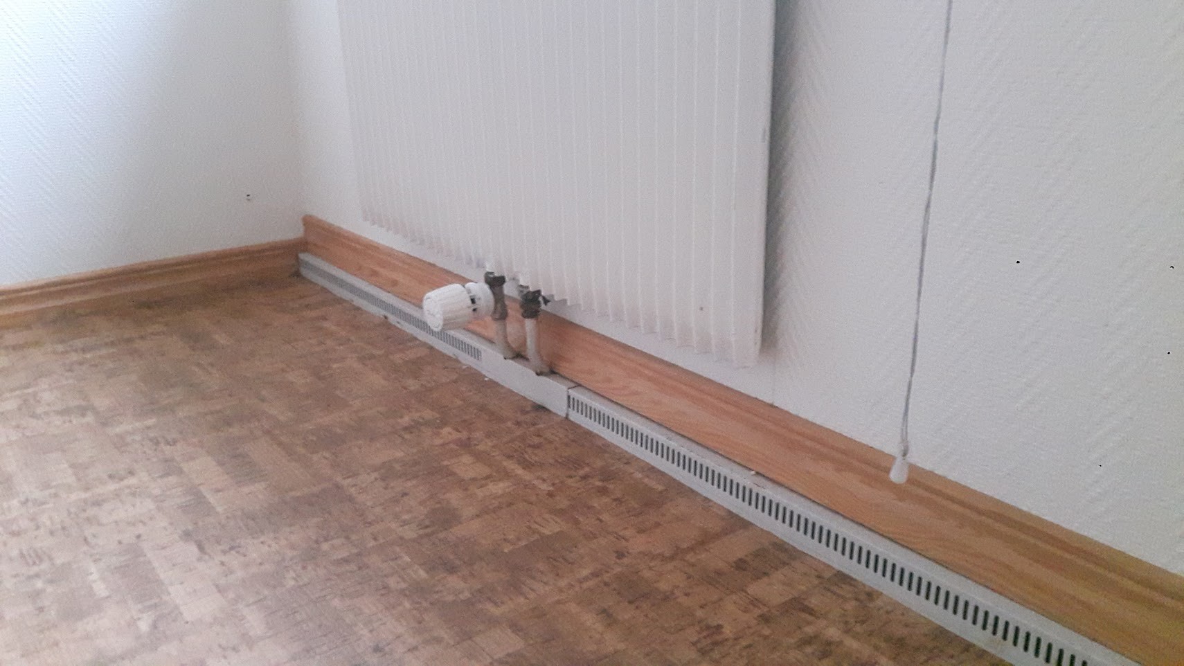 Ser ut som en av orginalinstallationerna i de gamla Elementhusen från Mockfjärd. Troligtvis ett Ettrörs-system. Några hus (mitt hus t.ex) hade istället direktverkande el och då låg alla kablar till radiatorerna dragna i dessa kanaler.
