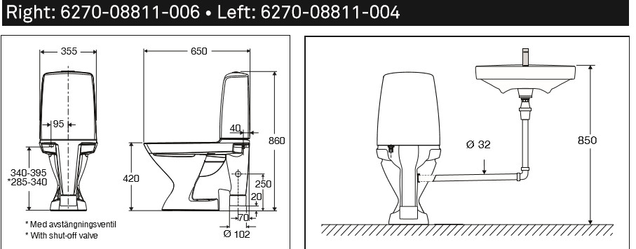 Vi har med en ny Ifö 6270 kopplat på samma vis, men det luktar i perioder väldigt illa. Eventuellt är det så att vatten stänker upp och sätter vacuumventilen ur funktion. Om man lyfter ventilen från röret och sedan sätter fast den igen brukar det vara otfritt i ett par dagar. Att köra utan ventil (med propp på hålet) ger av förklarliga skäl problem med vattenlåset, med gurgel och stänk på lock och sits.