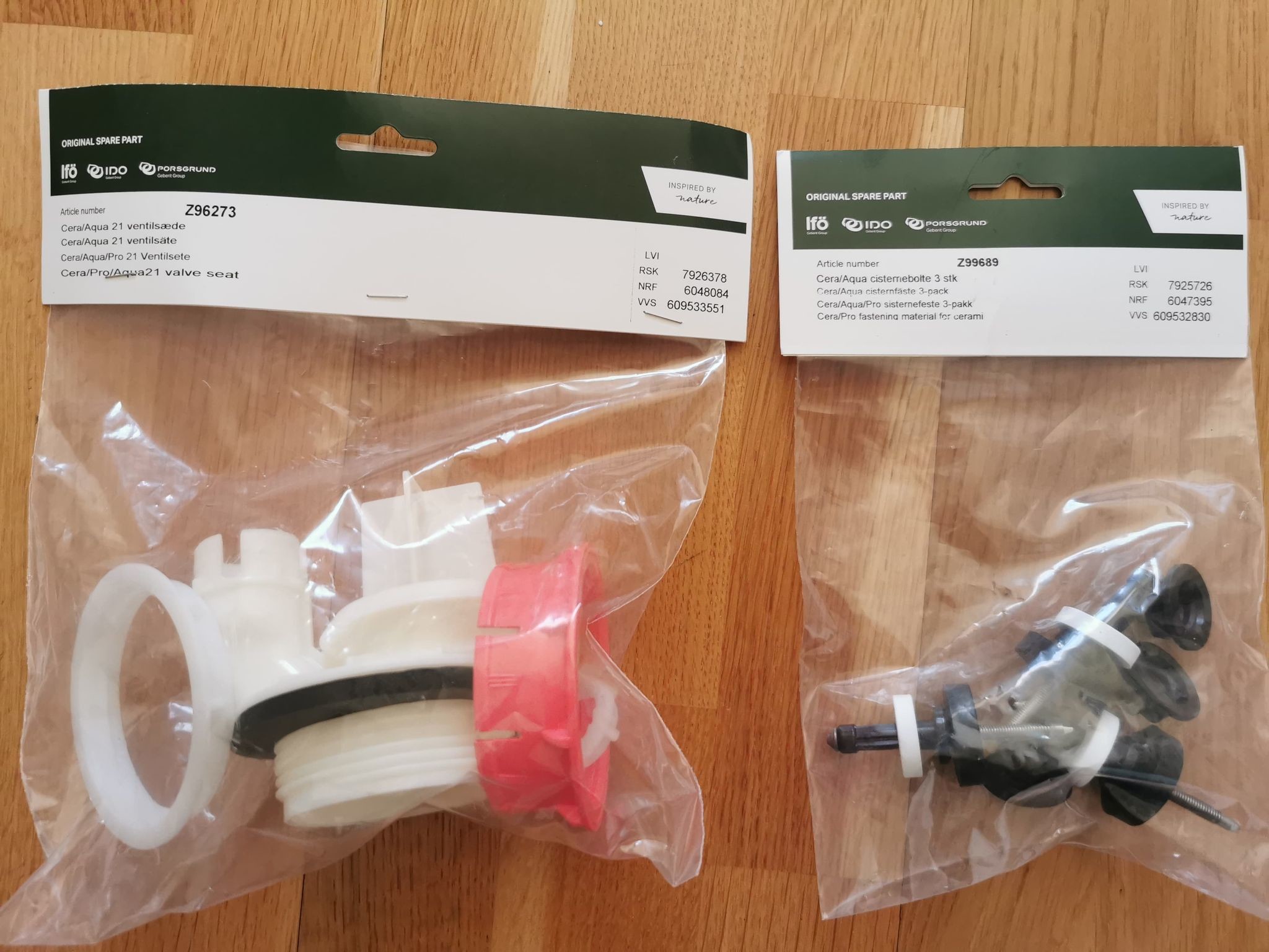 På bilden kan du se de delar jag har som ska bytas ut. Med "plastpluggar", menar du då cisternfästena (högra förpackningen på bilden).