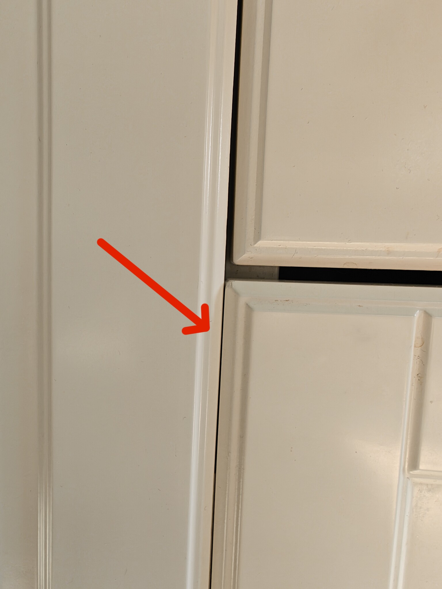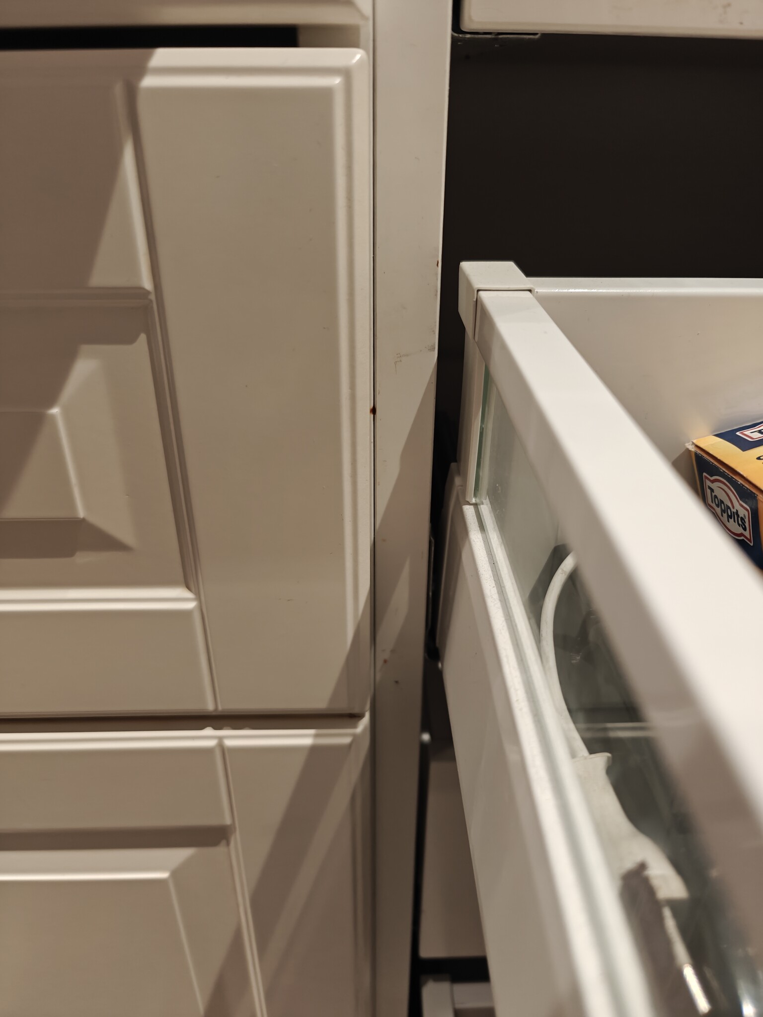 Ikea kök från 2020. Vår sopsorteringslåda verkar blivit sne. Såpass mycket att det tar i på vänstersidan. Man ser ganska tydligt att luckan är för långt år vänster.