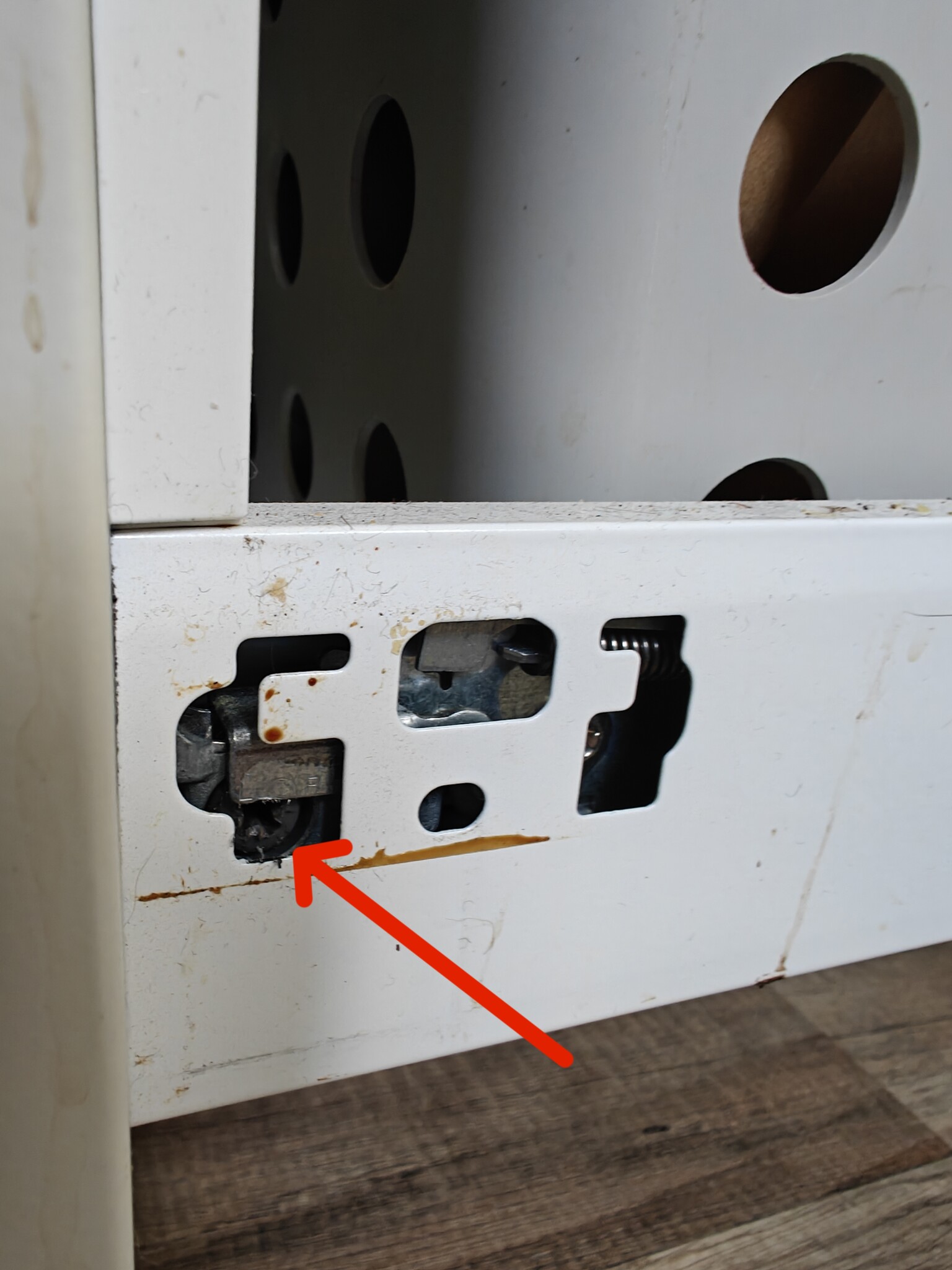 Släppte på höger(skruva motsols) och spände på vänster (medsols) men ingen större effekt. De är nog paj, på andra lådor vi har ser man att skruven liksom trycker på ett bleck. Men det gör inte dessa.