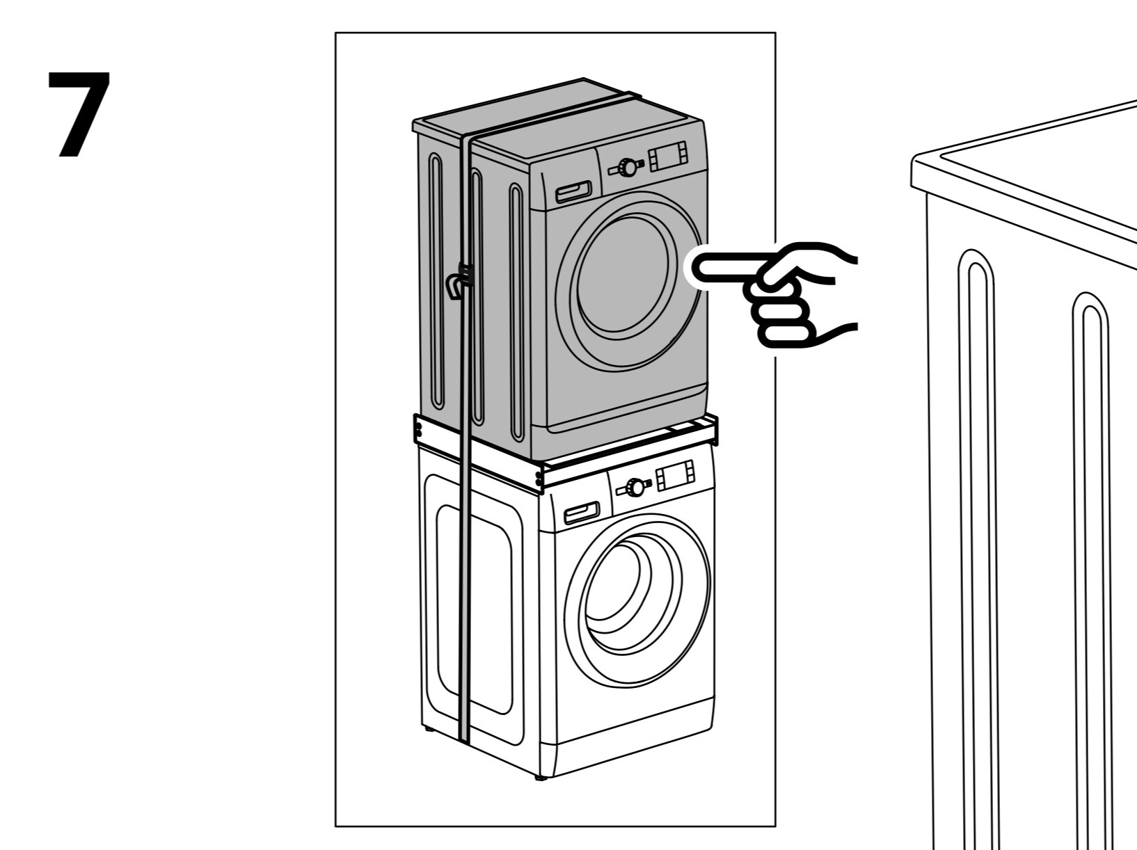 Mycket ska man se Jag har torktumlaren stående på tvättmaskinen utan några spännband eller annan säkring. Funkar utan problem. Antar att de har en tvättmaskin som vibrerar väldigt mycket.