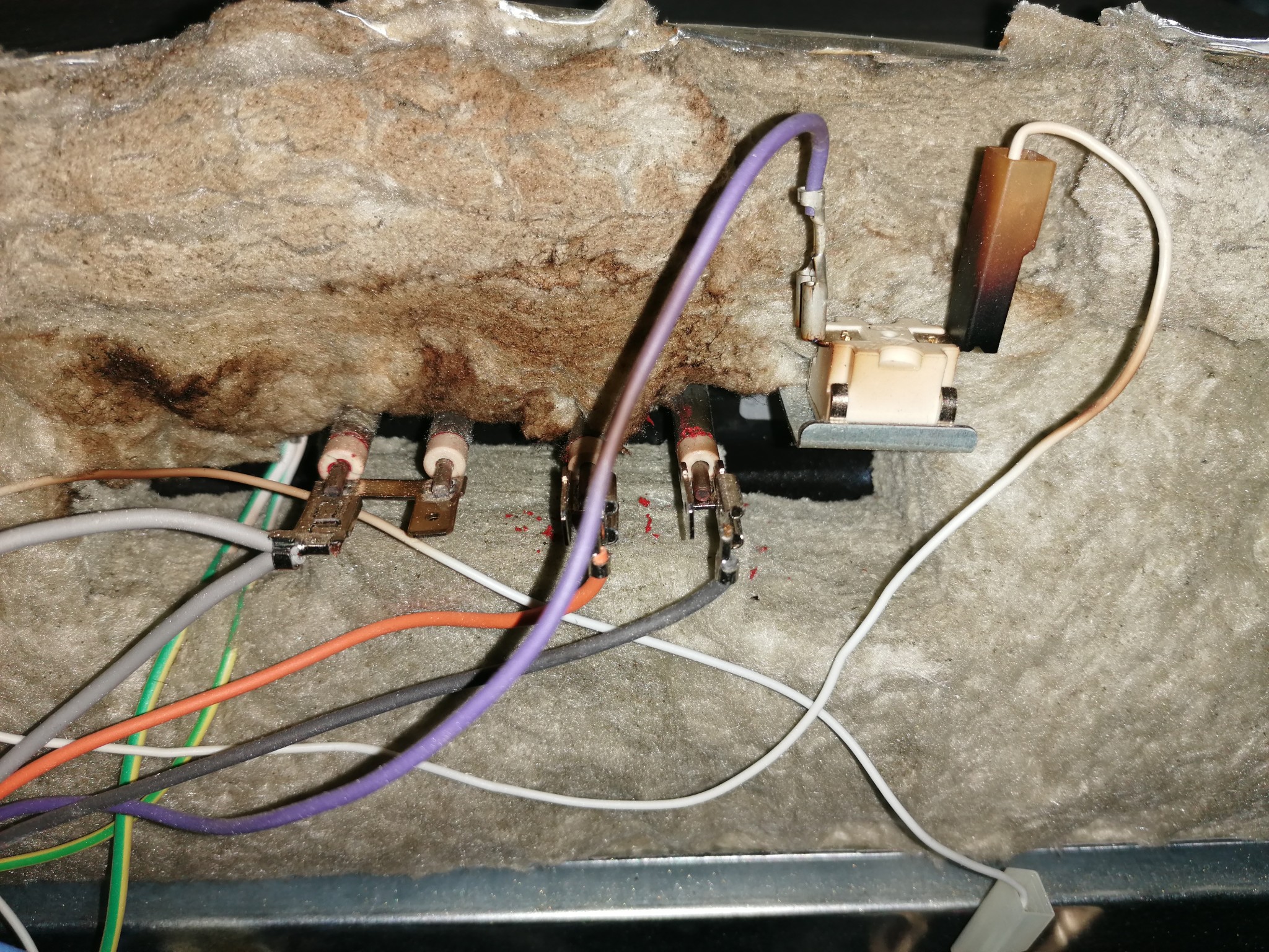 Hej. Jag har precis bytt ringvärme värmeelement i vår inbyggnadsugn. Nu undrar jag om det verkligen ska se ut så här på baksidan av ugnen? Det ser ju brännt ut? Annars funkar ugnen som den ska.