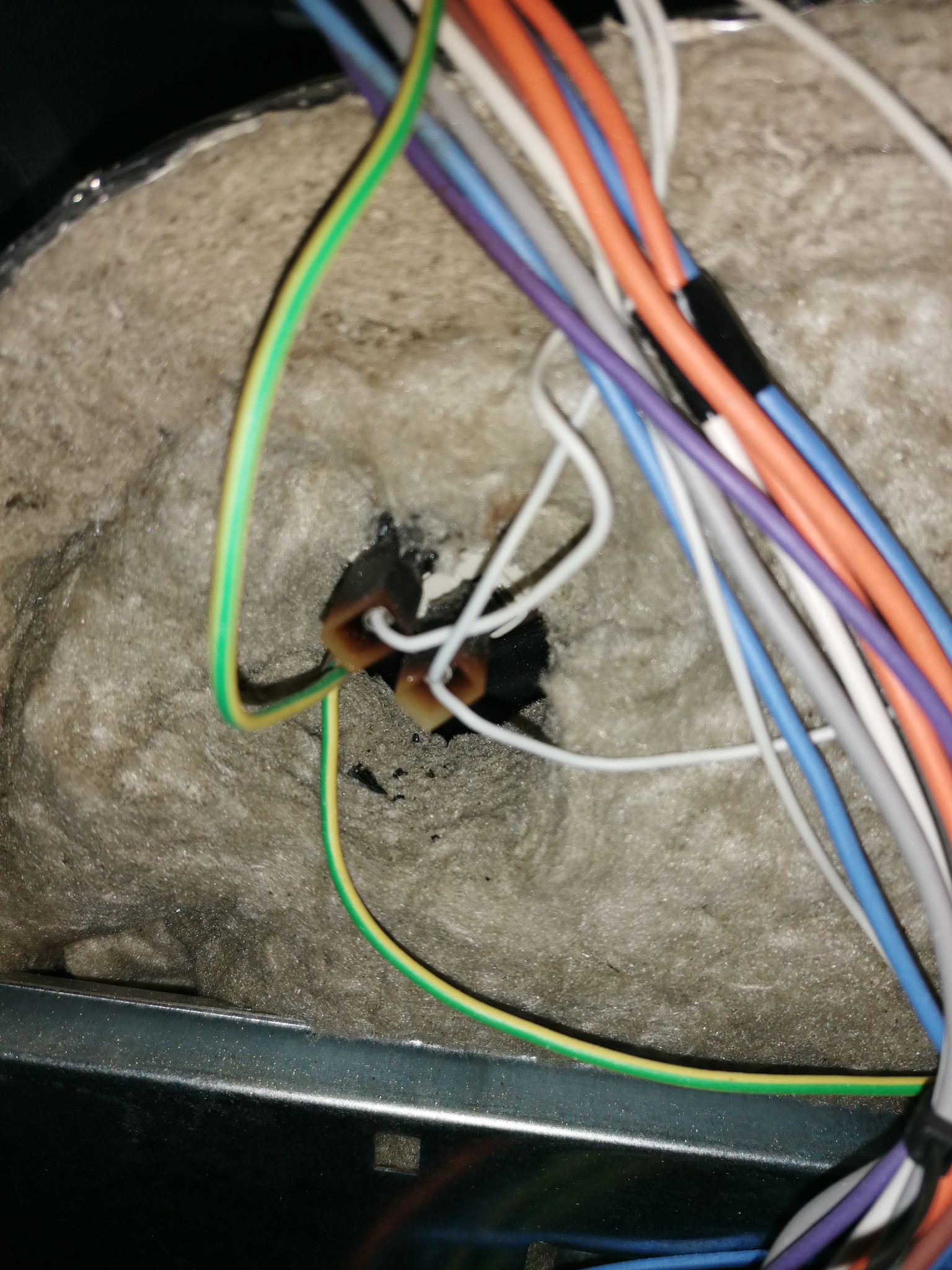 Edit dom stickisarna är skit och klämda på ledningen, där har det en förmåga att bli varmgång med brännsår och dålig kontakt, med påföljd att det bränner mer och till slut går av.