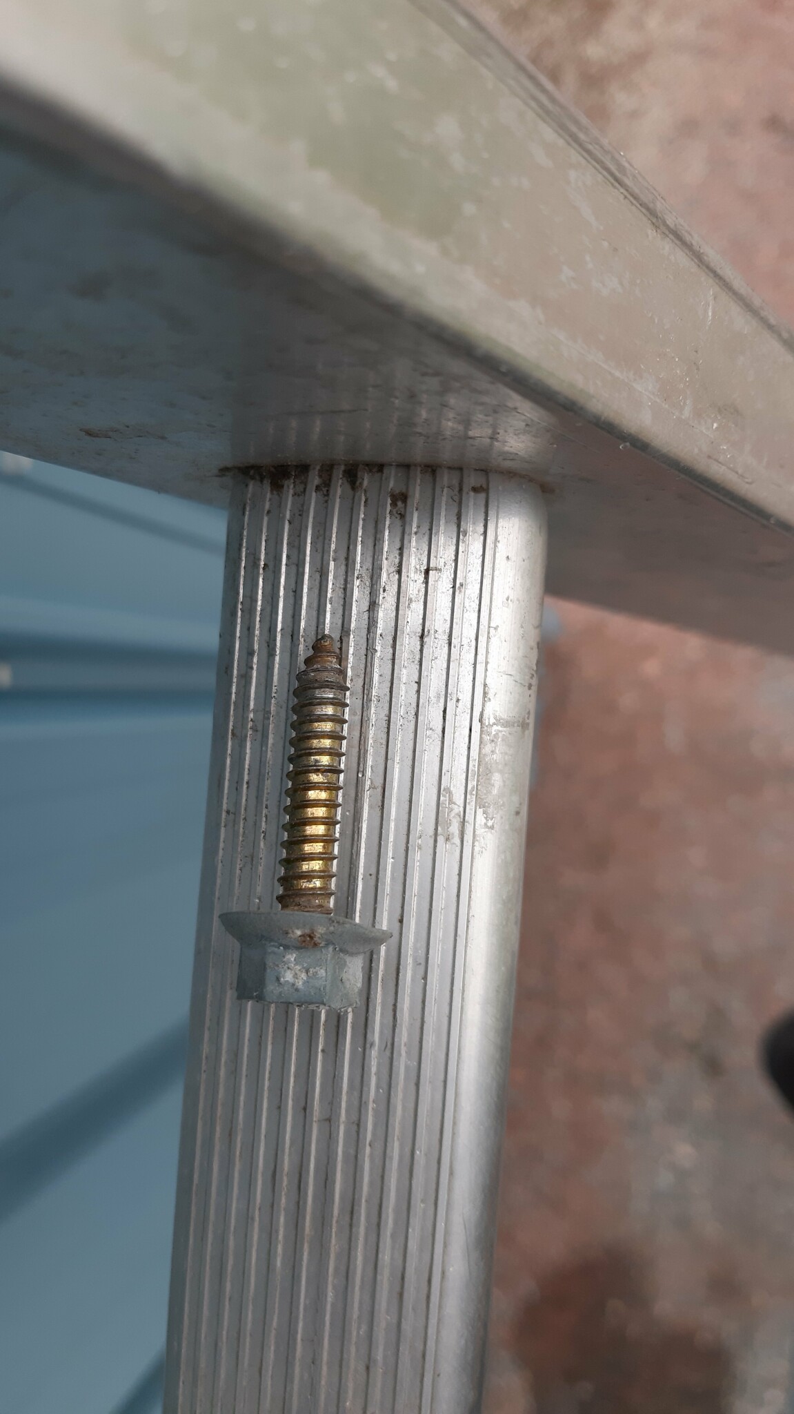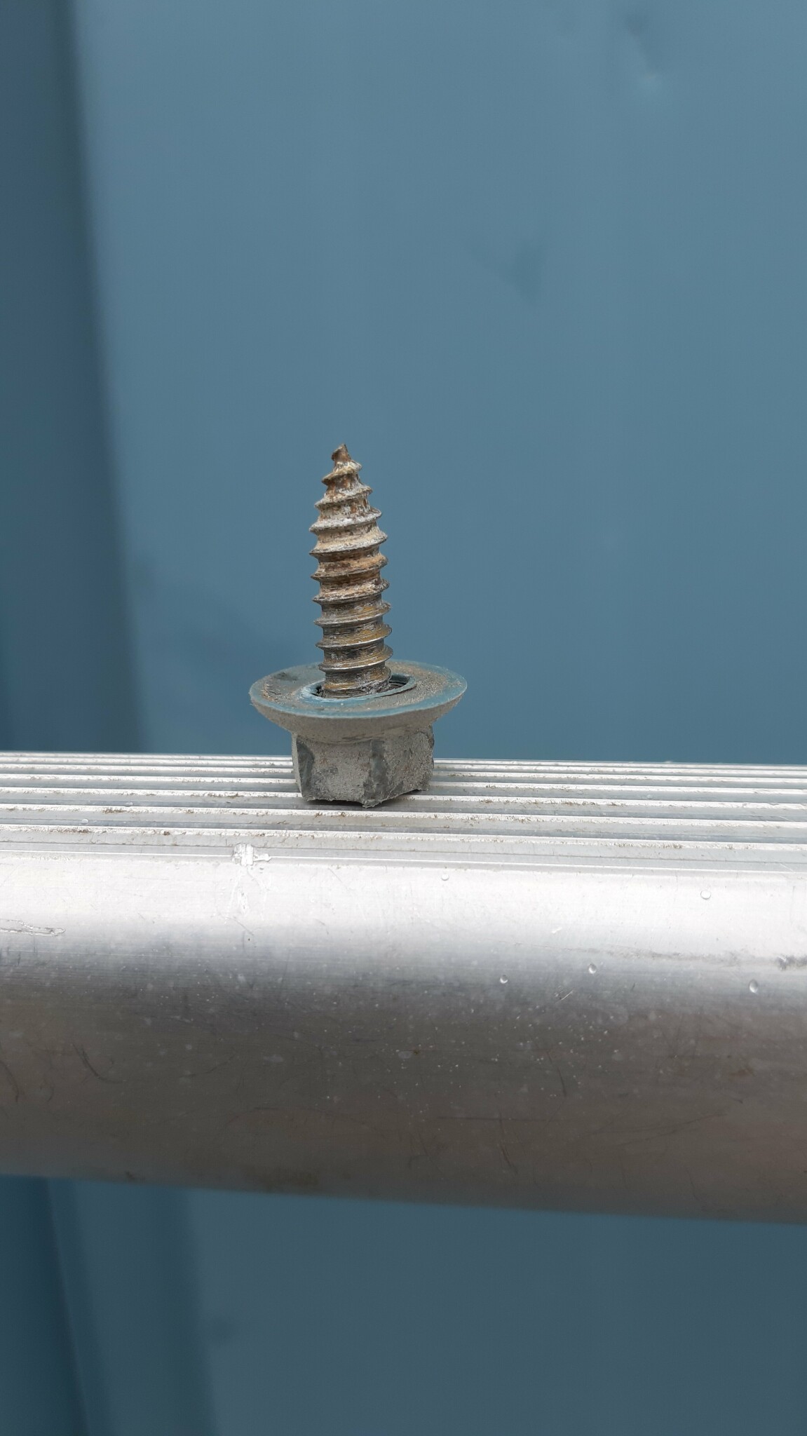 Oklart hur tjock metallregel det är, kanske bara tunn plåt som är 1,5 mm tjock, lite svårt att se. Också oklart om de vid montaget har förborrat alla hålen, för plåtskruven som använts ser inte direkt självborrande ut.