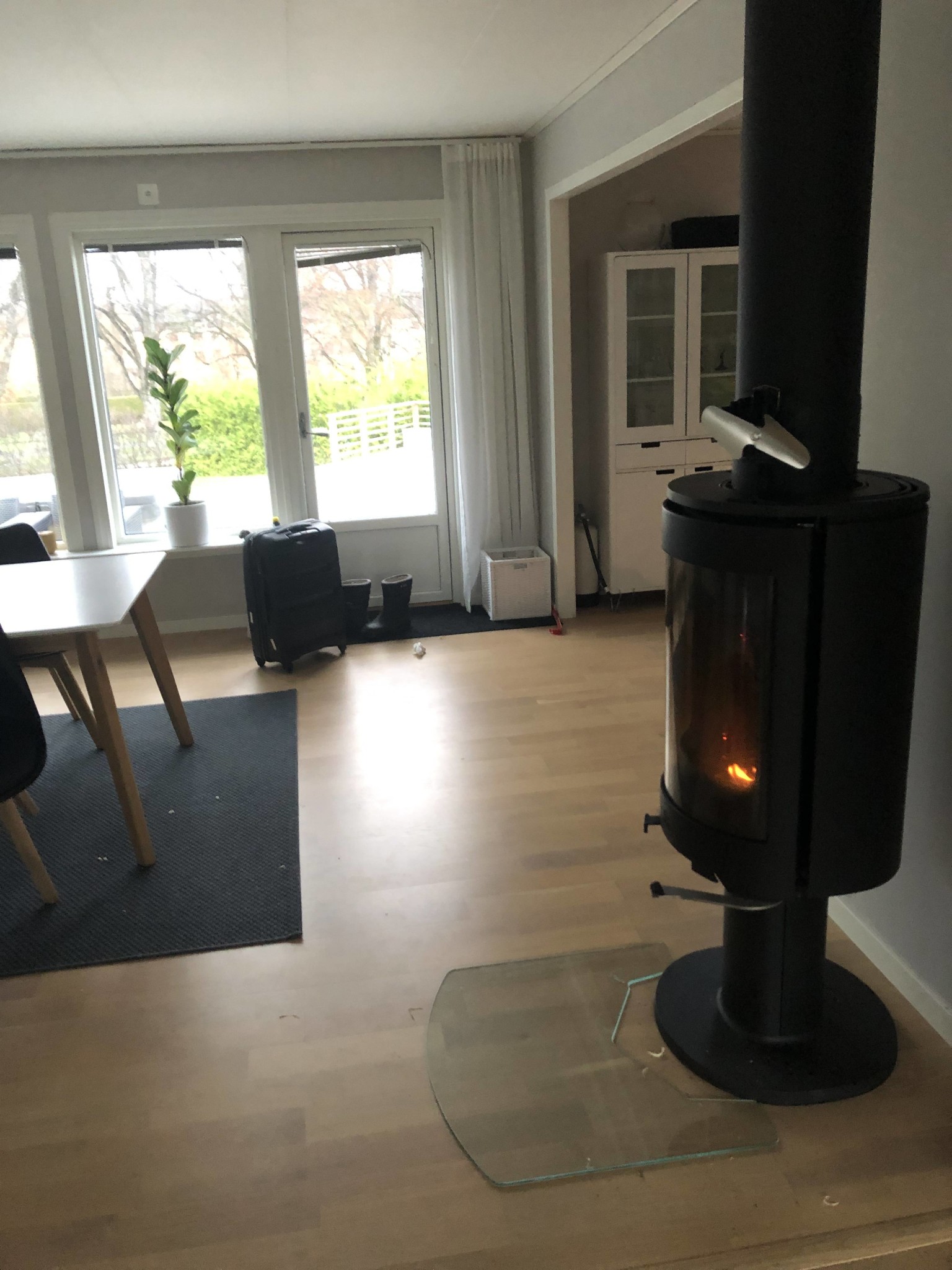 Det är ett speciellt hus vi har helt klart. Det är mekanisk ventilation med luftburen värme som går i kanaler. Tack för att du läste in dig på modellen förresten. Rummet där det står är ca 50 kvadrat tillsammans. Att inte värmen går upp mer än någon grad efter 2 timmar måste ju betyda att nått är helgalet. Har testat köra med en ytterdörr lite öppet nu men det luktar rätt mycket rök i huset ”ändå”. Skickar lite kortMaltemullvad skrev: