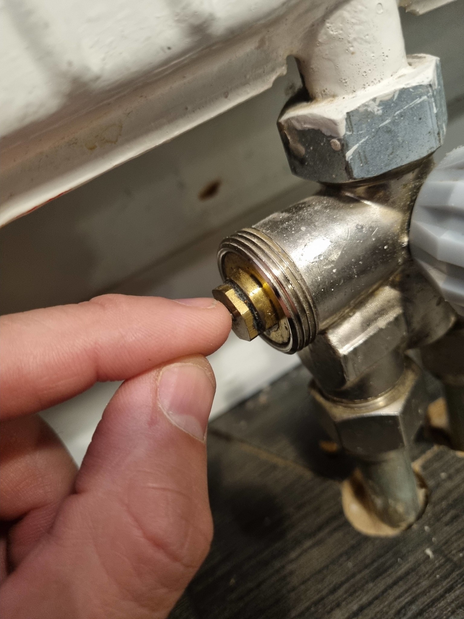 Hej kom på en sak, ser din avluftventil ut så här, så bryt bort det lilla röret, standard är det målas igen och då går det inte att lufta. Kanske bara ett hål och då måste det rensas.S salkin85 skrev: