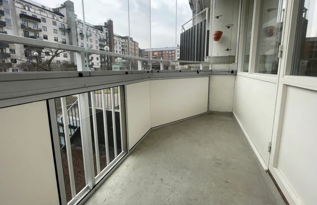 Vi är mitt uppe i ett arbete med att bygga om och glasa in en balkong på 15kvm. Vi har skjutpartier fönster som är 120cm höga. Då taklutningen på det utskjutande taket över det kommande plasttaket under diffar i takhöjd mot ritning så medför det att panelen under fönsterpartierna blir lägre än tänkt, endast 80cm. Reglerna säger minst 1,1 m. Hur kan vi lösa detta? Kan man sätta en ledstång i fönstren? Observera att fönstren går att skjuta helt fram och tillbaka, är 4 glas.