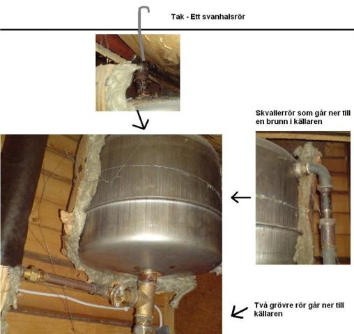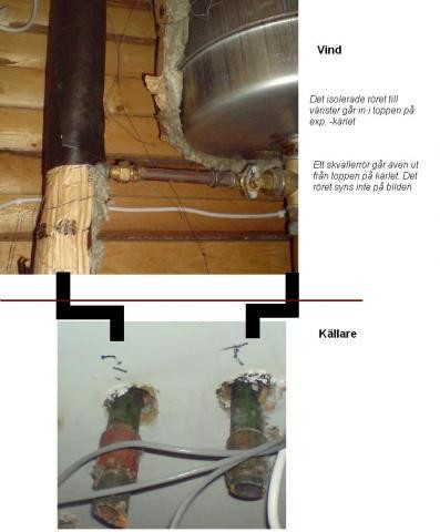 Bifogar en bild på hur expansionskärlets rör set ut på vinden. De två stora rören ser nämligen ut att vara sammankopplade på något vänster.