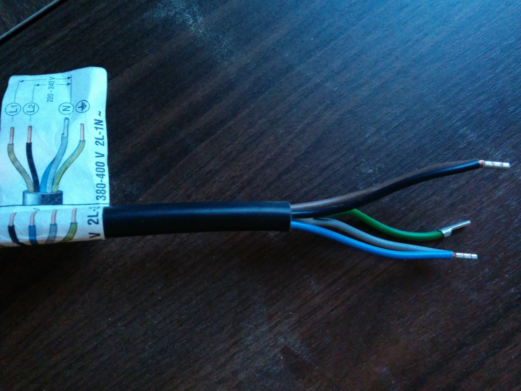 Jag skall koppla in en nyinduktionshäll Bosch PIE611F17E.. Sladden ser ut såhär: