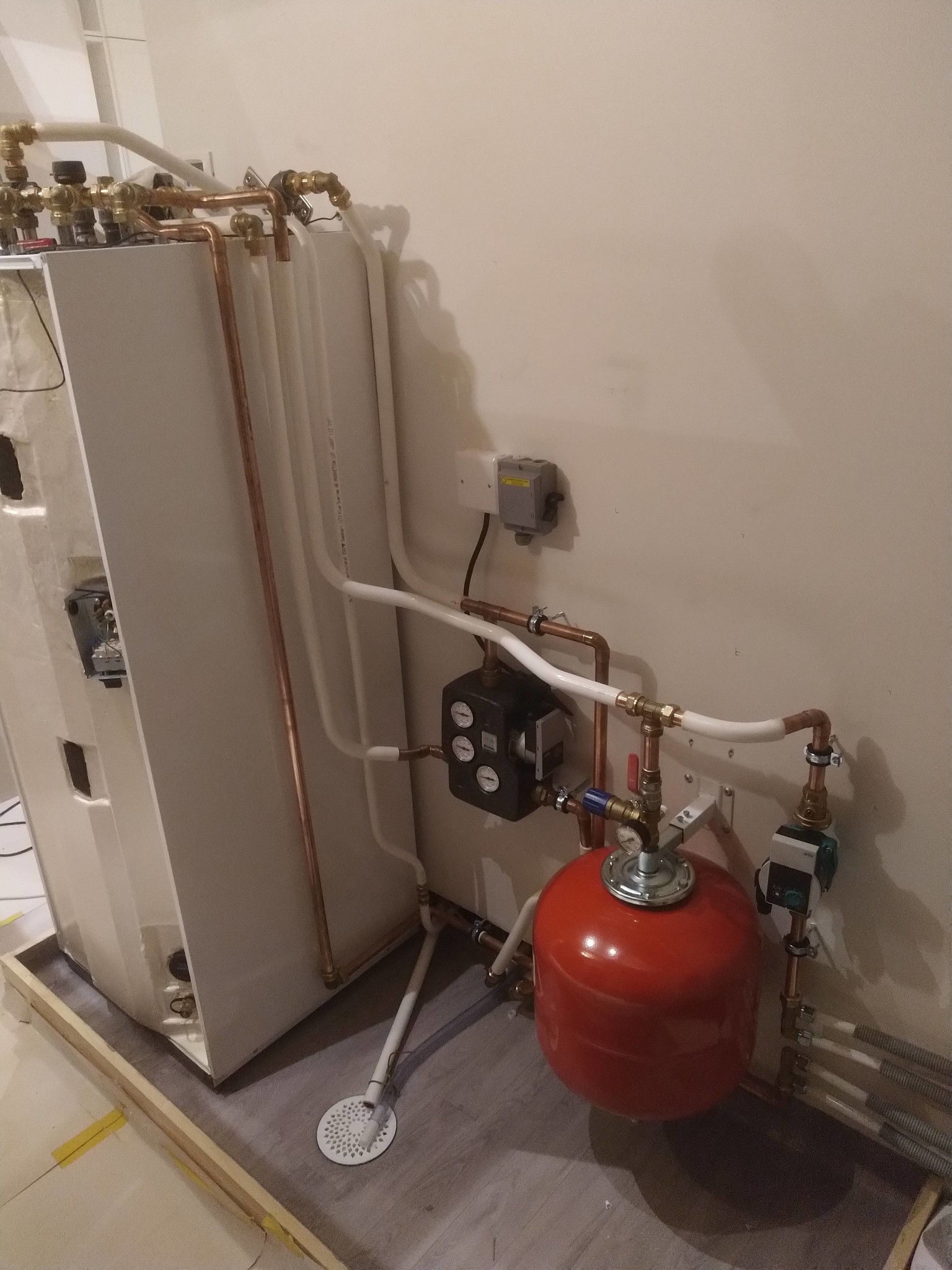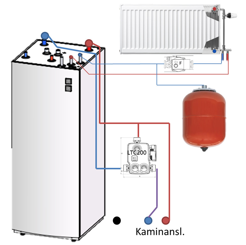 Det jag funderar mest på är om det är lämpligt att sätta expansionskärlet på radiatorkretsen, eller om man bör ha det på kamin-kretsen. De sammanstrålar ju i tanken oavsett så tryckmässigt borde det inte påverka, men det kanske finns något skäl till att ha det på den ena eller andra viset.