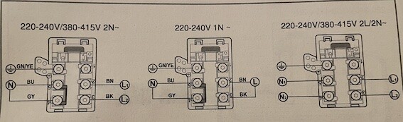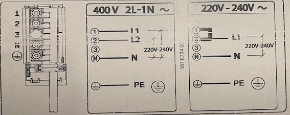Hällen består av 2 separata delar, höger + vänster som inte har med varandra att göra därför 2st Nollor och 2st fasansluning elanslutning alltid 230V