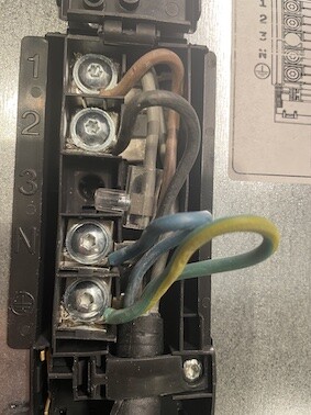 2. Ny häll utan kabel. Använd den gamla eller köp en ny kabel med Perilex kontakt, koppla in som i din gamla Grå kabel isolerad. ( i vissa hällar finns en extra blindanslutning här kan man parkera den 3:e fasen som inte används.