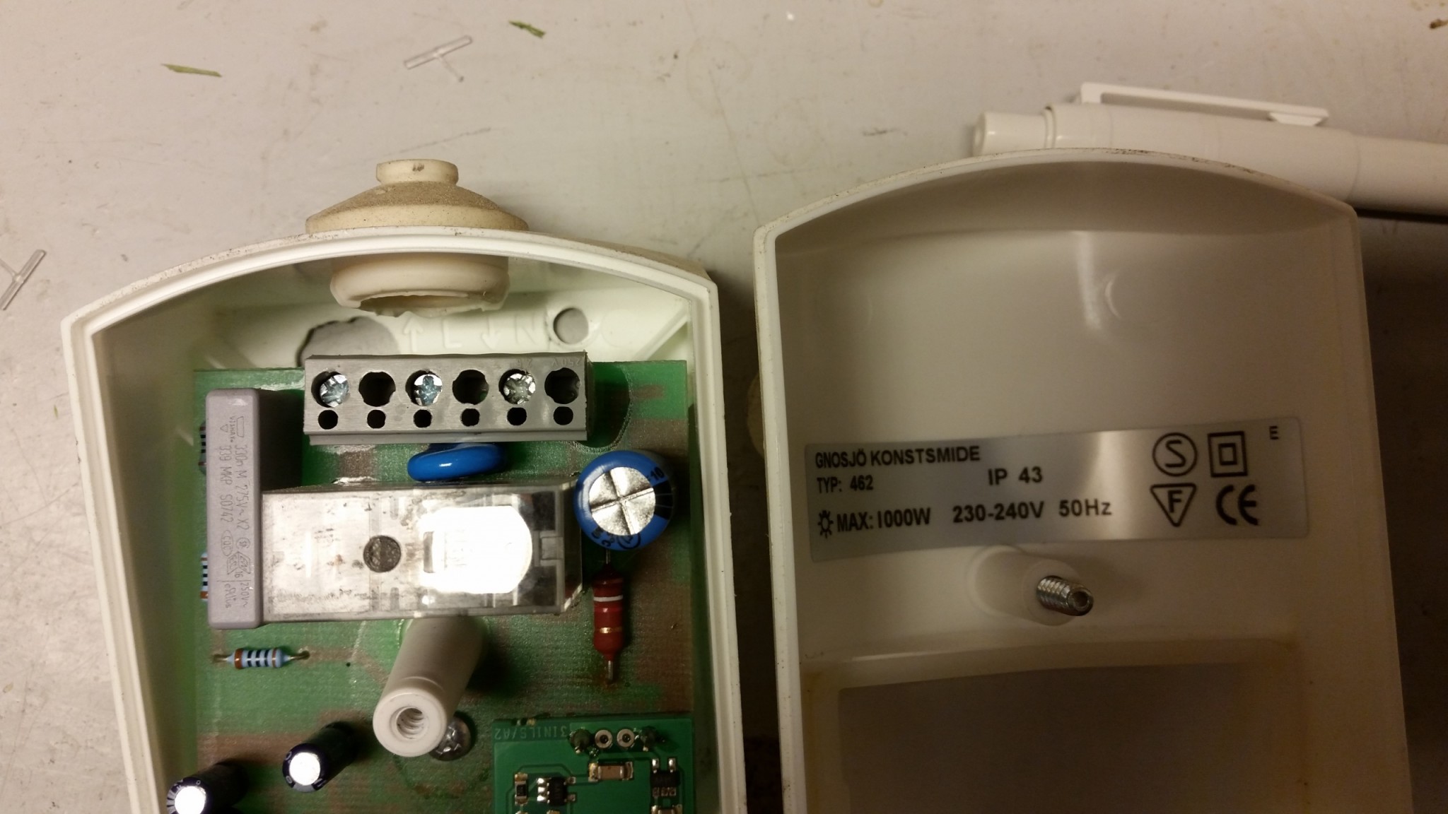 Hade lite bråttom när jag tog ner skymningsreläet och nu när jag ska sätta upp den så kommer jag inte ihåg hur den ska kopplas, problemet är att det är ett hål borrat precis vid kopplingschemat. Har någon koll på vilken kabel jag ska sätta i sista anslutningen?